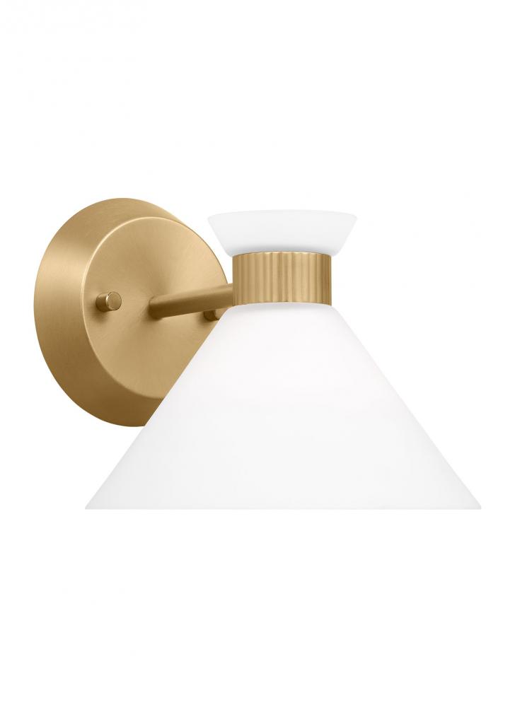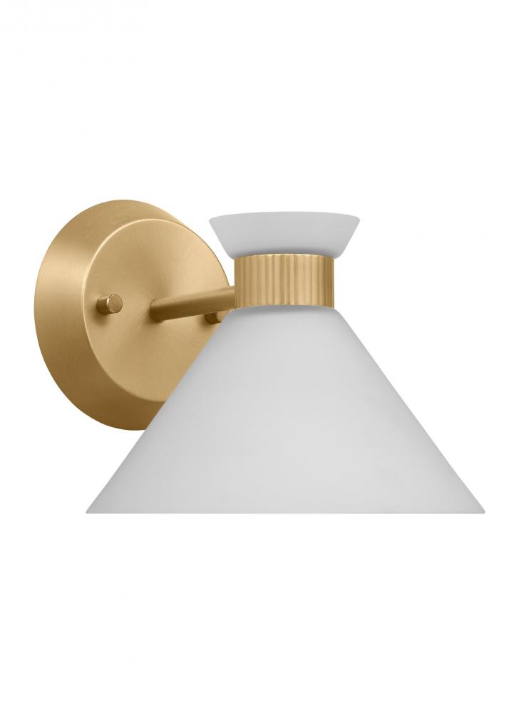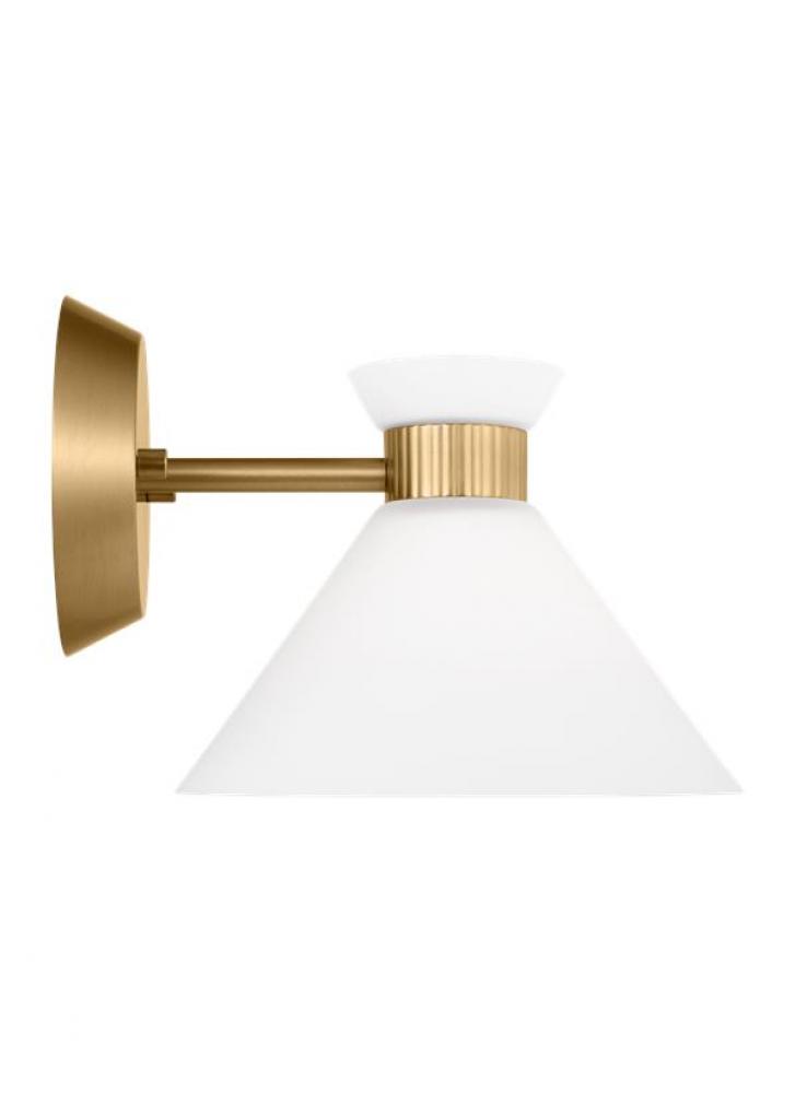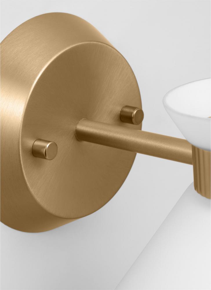 Inspired by playful mid-century modern design, the Drew & Jonathan Belcarra Small Sconce is accentuated by a flared glass shade with ribbed metal details and etched white glass that bestows an almost whimsical touch to the clean design. Available in three finishes, Brushed Steel, Midnight Black, and Satin Brass, the Belcarra looks great on its own or installed above a bathroom vanity. This fixture may be mounted in the up or down position, and is cETL listed for damp locations, making it the perfect lighting solution for any space.