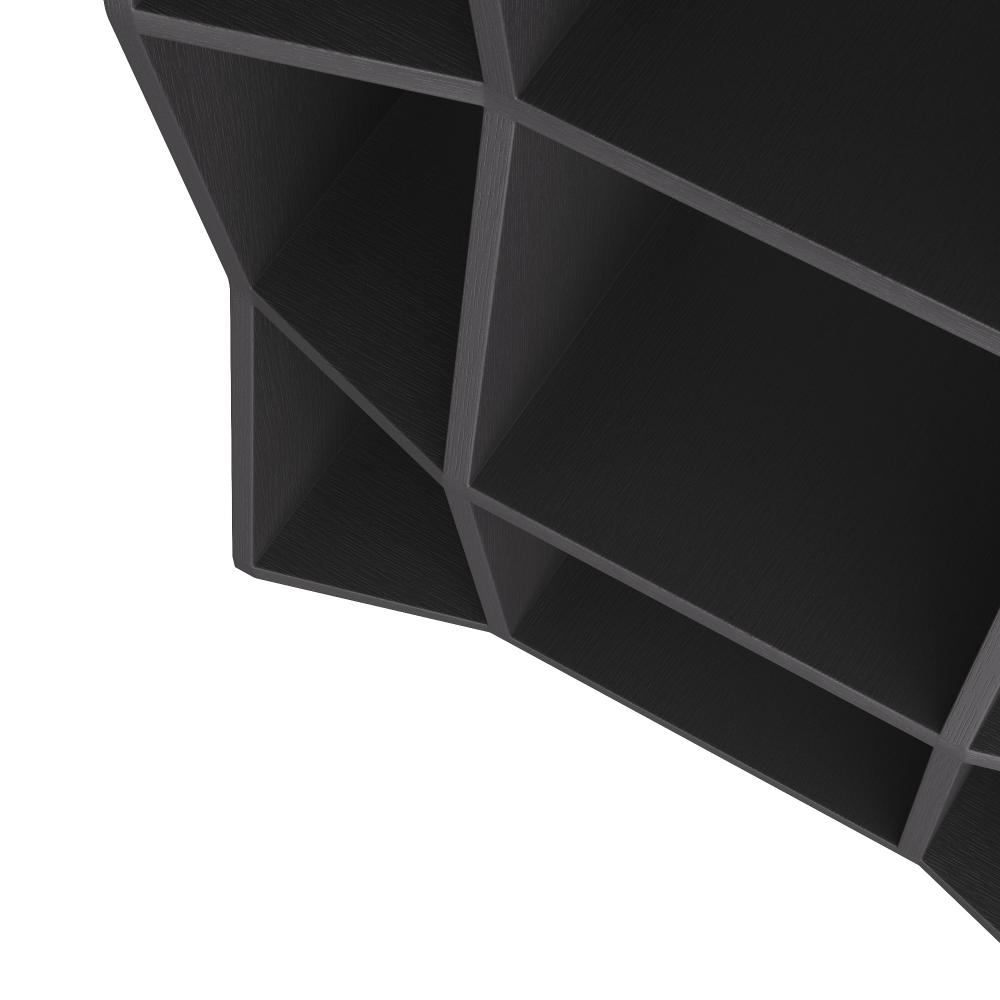 Subtle zigzags elevate the classic structure of our bookcase. Designed with shelving of varied depths, its playful angles add dynamism to any space. Finished in ebony over white oak veneer.