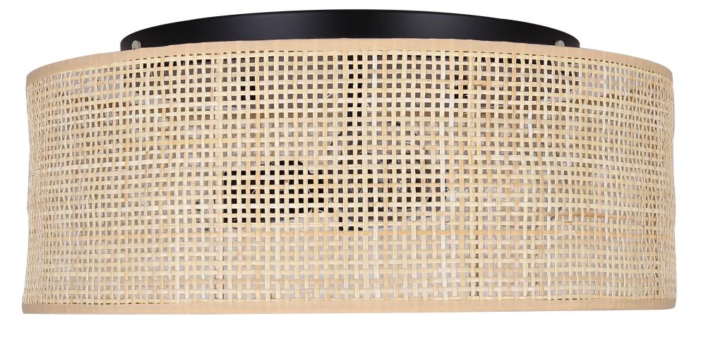 BELLAMY 16.25 in. 3-Light 60-Watt Boho Black Flush Mount with Natural Rattan Shade