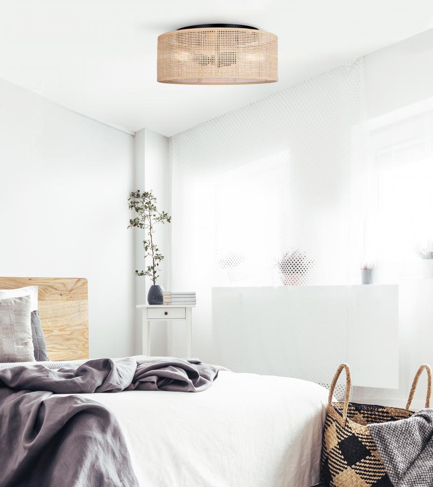 Rustic Charm: BELLAMY is a charming 3-light flush mount fixture designed to illuminate your space with rustic charm. Its natural rattan shade adds character and warmth to any room, enhancing the overall aesthetic appeal.