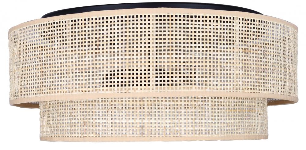 BELLAMY 19 in. 3-Light 60-Watt Boho Black Flush Mount with Natural Rattan Shade
