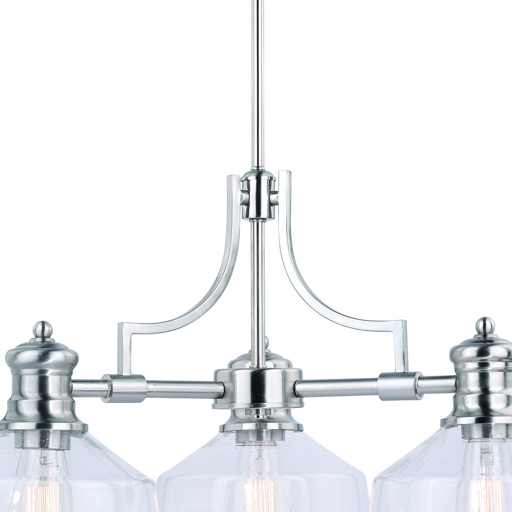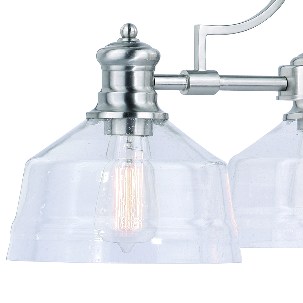 The Beloit collection a welcoming and inviting feel to your kitchen or living spaces. Soft curving lines finished in satin nickel, are paired with large clear seeded glass shades, creating a look that accents the most comfortable spaces. Combine that with a vintage Edison style filament bulb to complete the look. Bring a level of sophistication to your trendy farmhouse or urban style.