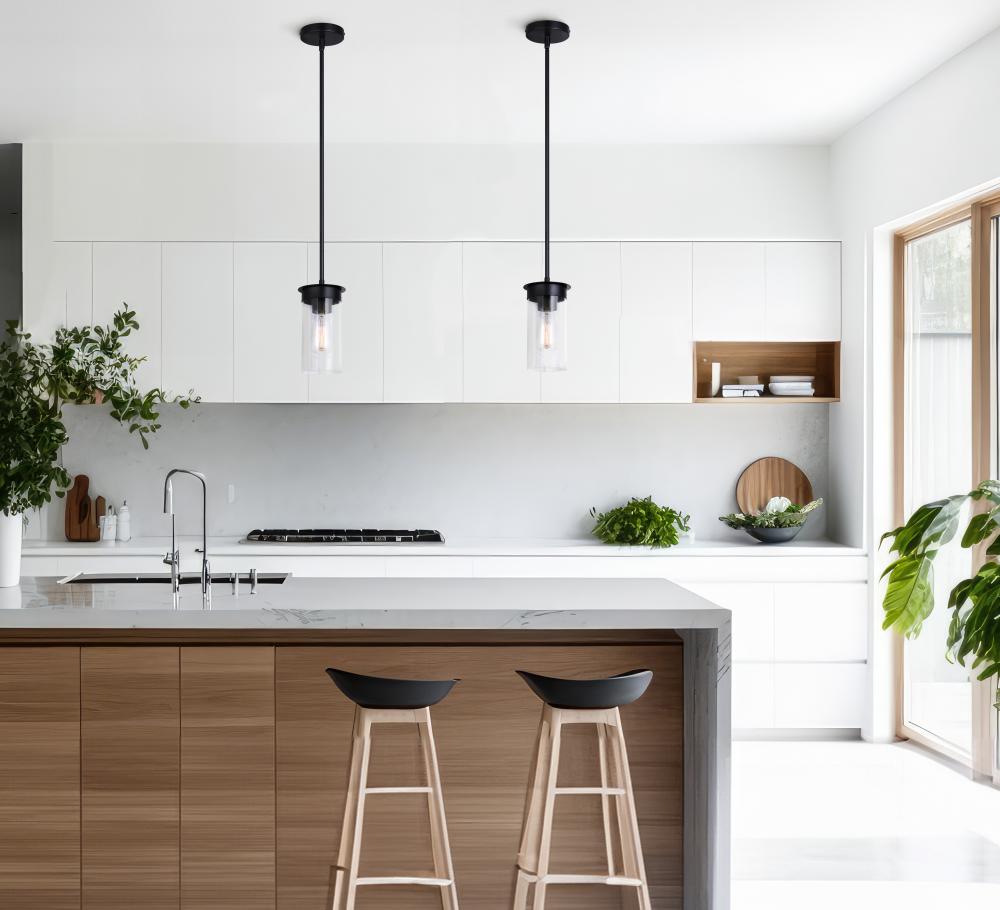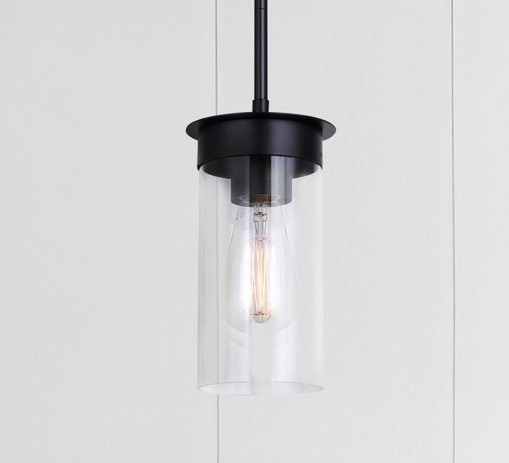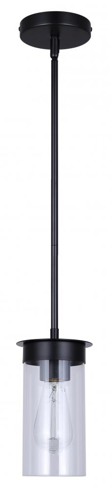 BENSON, IPL1205A01BK, MBK Color, 1 Lt Rod Pendant, Clear Glass, 60W Type A, 4.75inch W x 11.75 - 59.75inch H