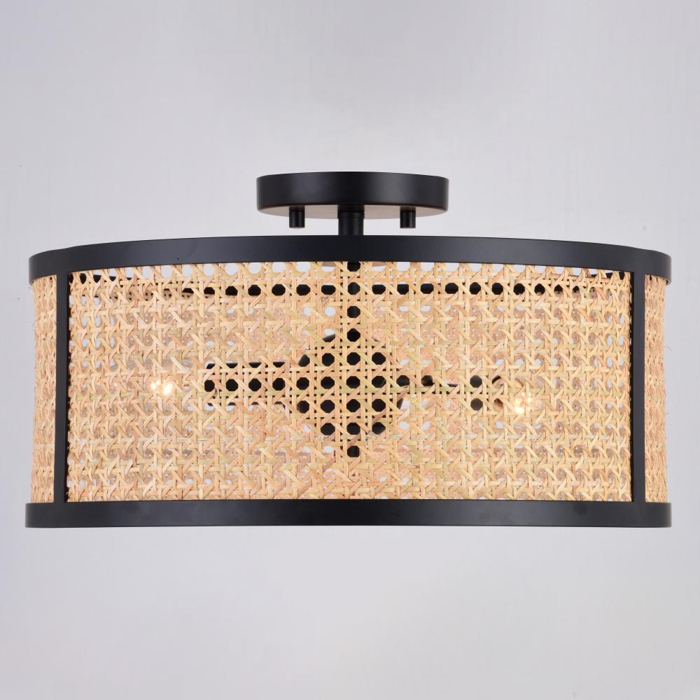 Natural rattan cane round drum shade provides bright illumination and a modern farmhouse style