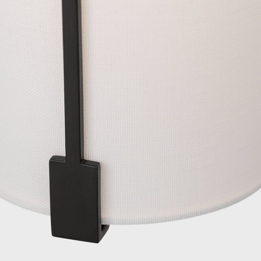 Crafted with Steel in a Aged Iron finish with white linen shade