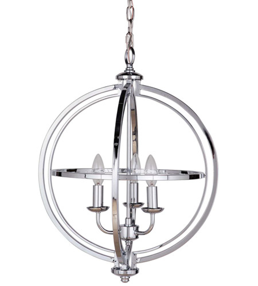The double open globe framework of the Berkeley collection available in espresso or chrome provides the illusion of movement around a simple candelabra center light source.