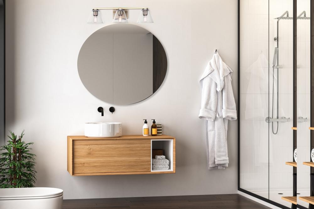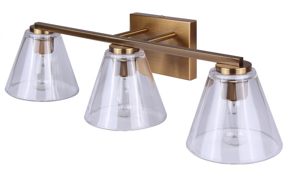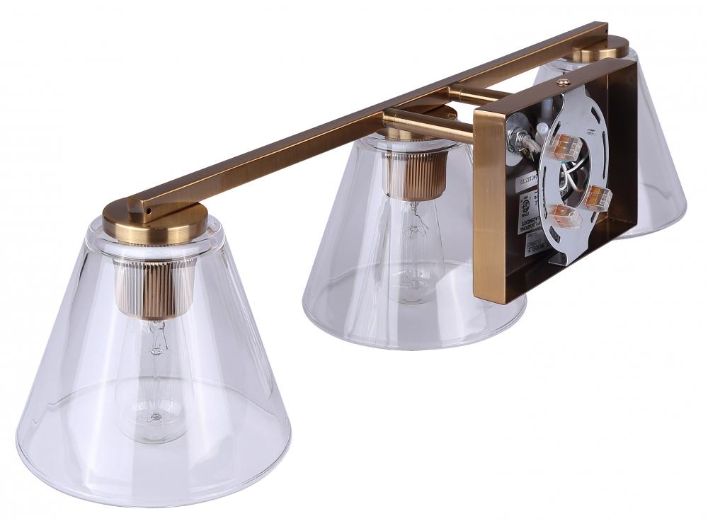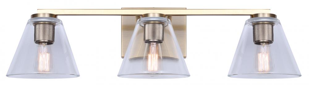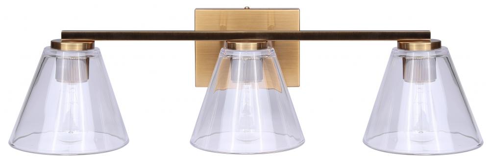 BERKLIE 25.5 in. 3 Light Gold Vanity with Clear Glass Shade