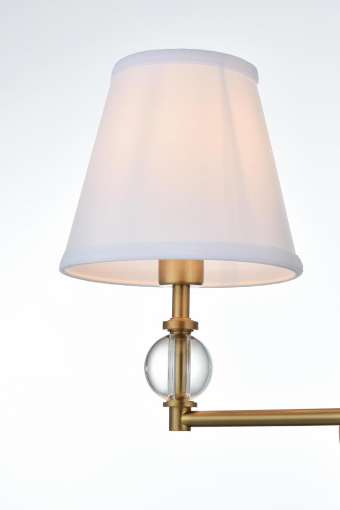 Bring a classic yet sophisticated touch to your home with this versatile wall sconce. Available in chrome, black, brass, or satin nickel finishes, this sconce is perfect for any room, from hallways to living rooms and bedrooms. The beautiful tapered fabric shade diffuses light warmly, creating a cozy and inviting ambiance. with its crystal glass accent, sleek metal arm, and compact round backplate, this fixture exudes timeless elegance that fits a wide range of interior styles. It uses three E12 socket bulb (not included) and is compatible with dimmable bulbs for ultimate lighting flexibility. with a maximum wattage of 120W, this wall sconce delivers the ideal level of light to brighten your space with style.