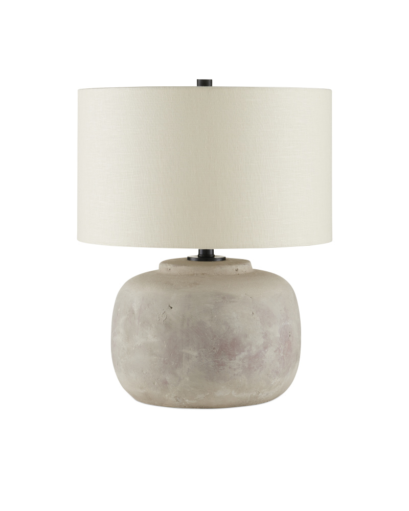 The Beton Table Lamp has a distressed finish on its concrete body aptly named antique earth. This is one of our products that illustrates the talented finish artisans who make our new products look beautifully aged. We've topped this buxom distressed gray lamp with a light beige linen shade.
