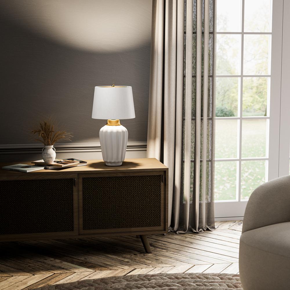 Bexley Table Lamp in White and Brushed Brass