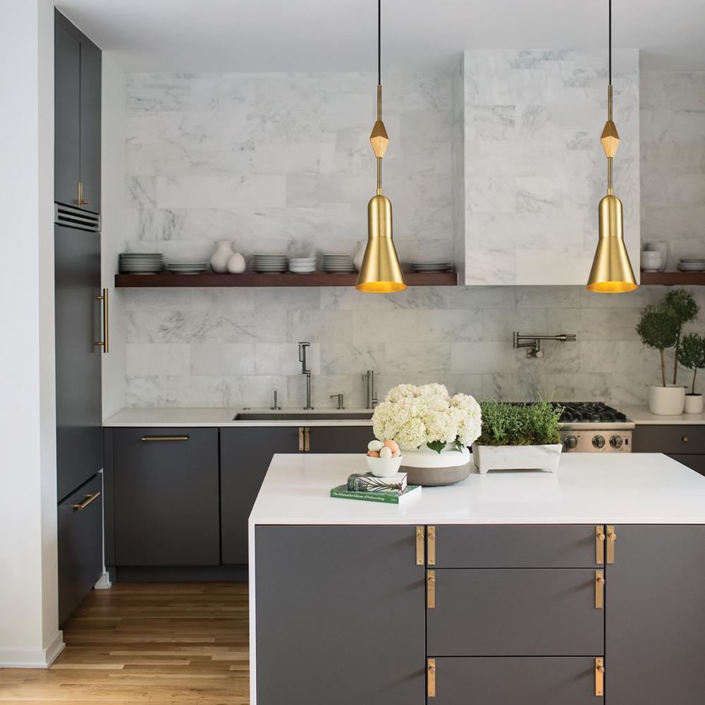 Etoile Small 1 Light Pendant in Aged Black with gilded star accent. Adjustable height. Perfect all around the house.