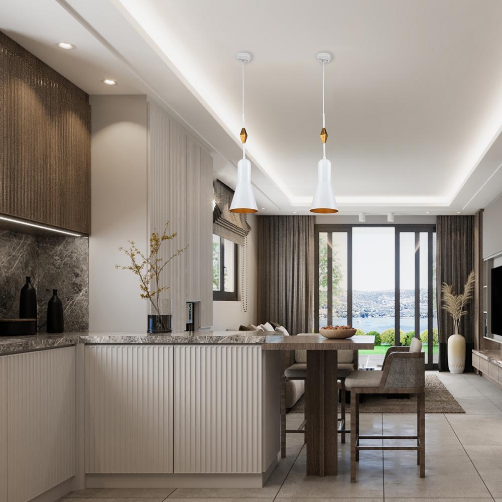 Etoile Large 1 Light Pendant in White with unique gilded star accent. Adjustable height. Perfect all around the house.
