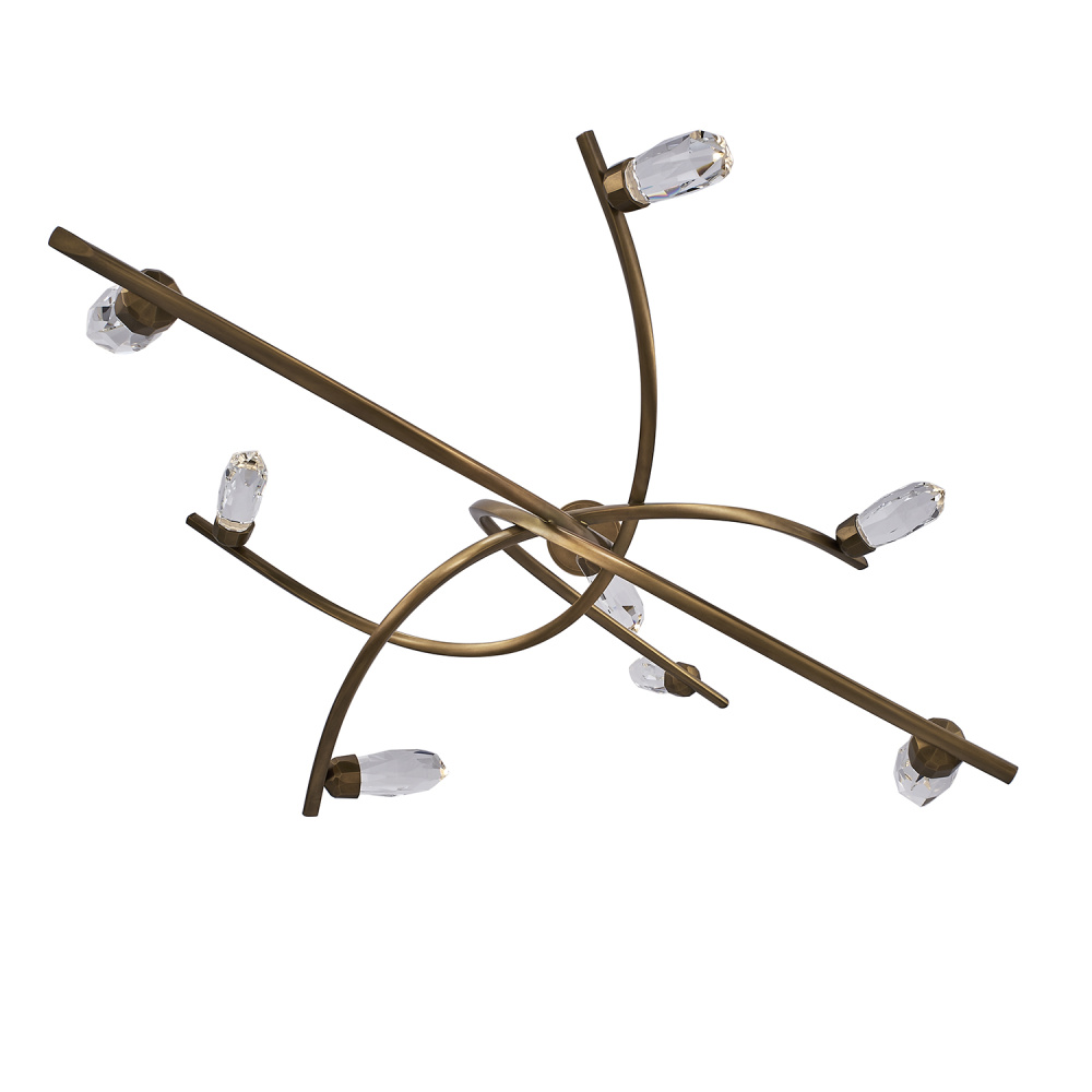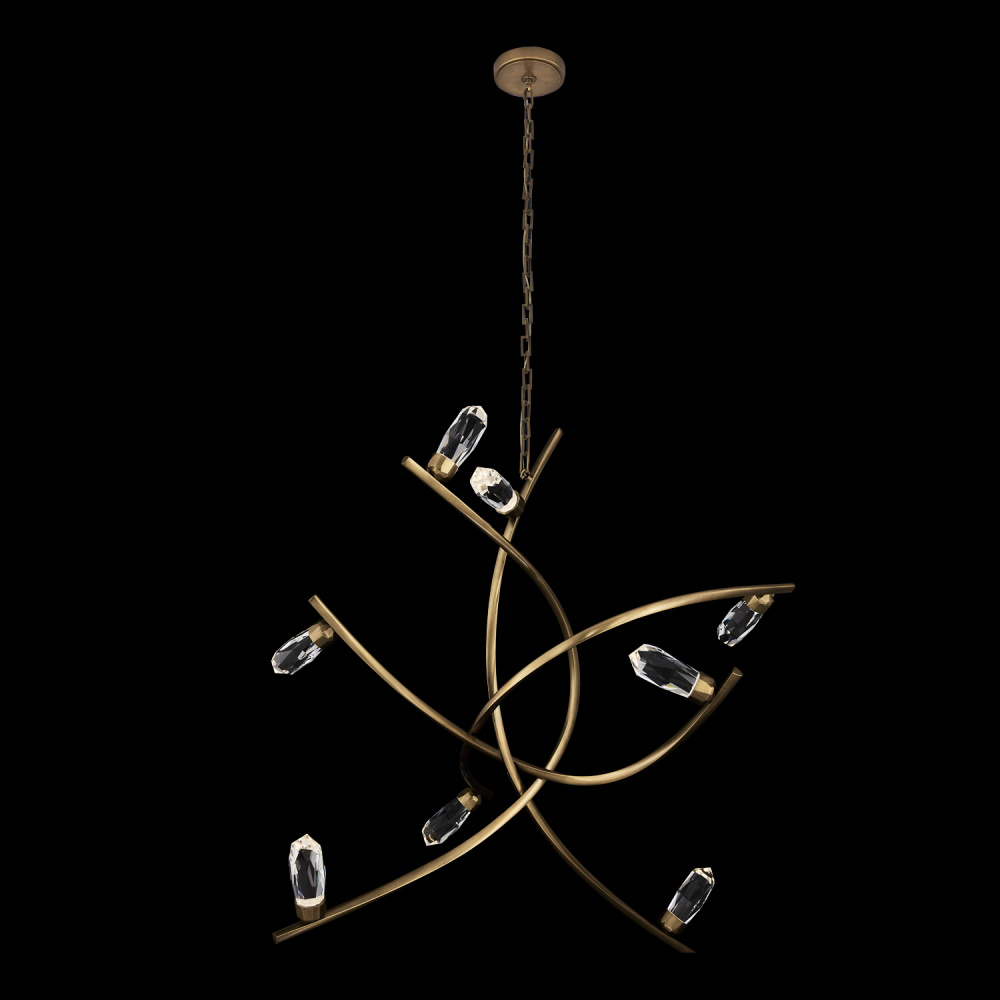 Large, striking crystals seemingly defy gravity as they perch atop the sweeping True Brass (062) arms of the Bilancia Collection. The artistic, sculpture-like fixture shape provides unique views from different angles, and individual LEDs shine through each crystal, providing both light and sparkle to this playful collection.