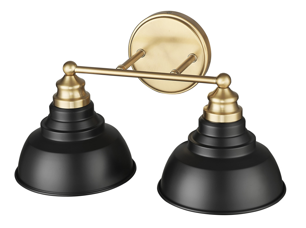 Illuminate your decor style with this two light Bishop bath fixture from Acclaim Lighting. The design features a mixed metals finish in black and brass. Stylish and sophisticated, the design is ideal for bath and vanity areas over sinks.