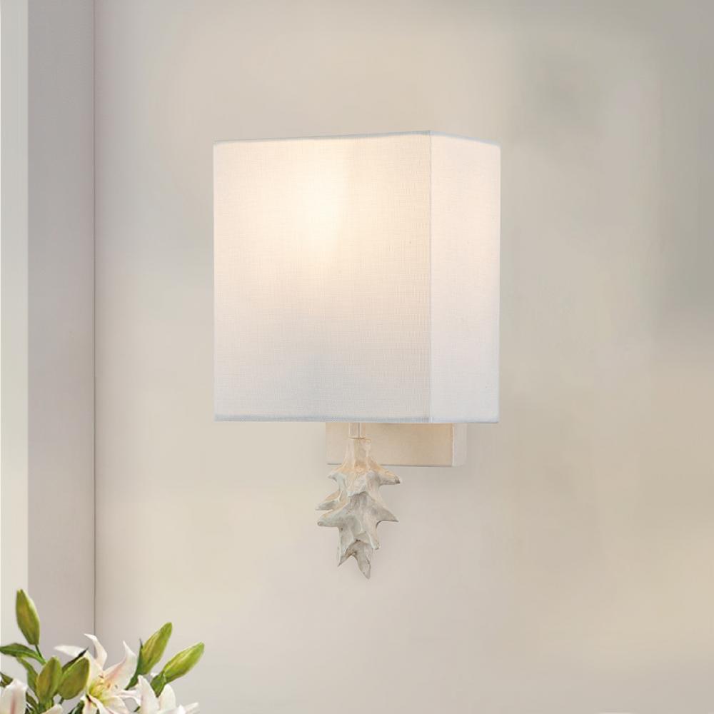 Blanche 1 Light Sconce in Bone White. Sculpted element draws the eye while a soft white linen shade provides a balanced and calm light. ADA compliant for commercial use.