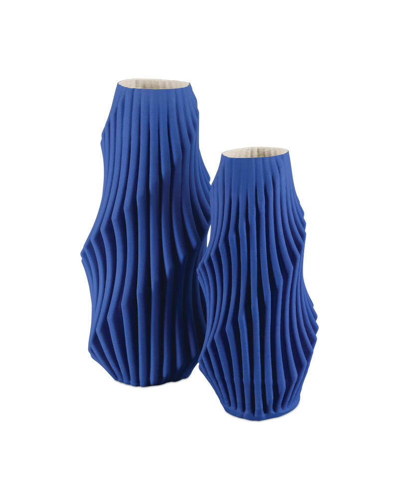 The Blue Pleat Large Vase is attractive in a lovely hue of cobalt blue. The deep furrows that wrinkle around the form to create waves of movement are achieved with such a uniformity they can only be machine made. The most surprising thing about this handsome vessel is that it is made of 3D-printed porcelain, an ancient material you might not expect to be so amenable to such a contemporary process.
