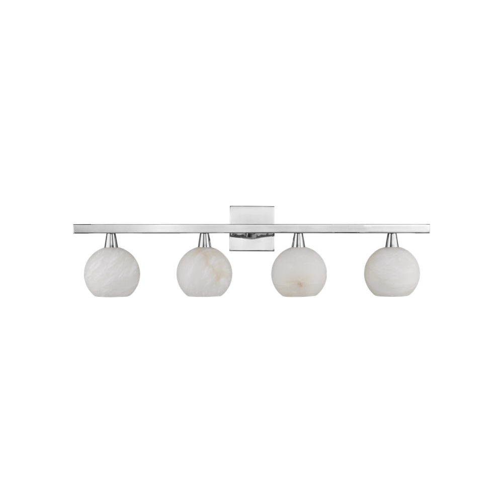 The Bombelles Nickel Bath Bar was designed to spread abundant light over a bathroom counter; the shiny silver fixture joining others in the Bath Collection. The globes will be luminous when they are lit, as they are made of natural alabaster, and the polished nickel finish on the metal continues the coolness of the design. Alabaster is a natural material, so there will be slight variations in each of the fixtures.