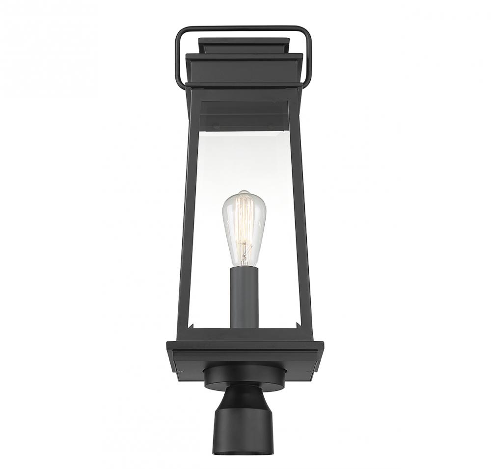 The Savoy House Boone 1-light outdoor post light showcases a classic lantern-style lighting look with panes of clear beveled glass and a matte black finish that adds versatility. Boone is 24.25" in height and 8.25" in width. It uses 1 standard size bulb with a max of 60 watts (bulb not included).