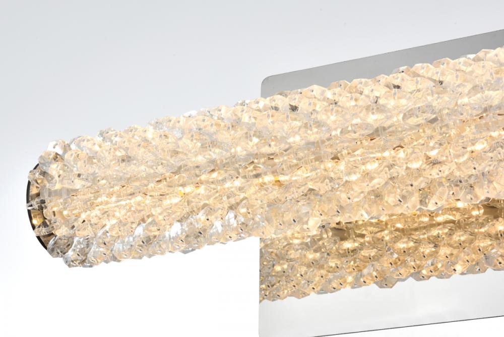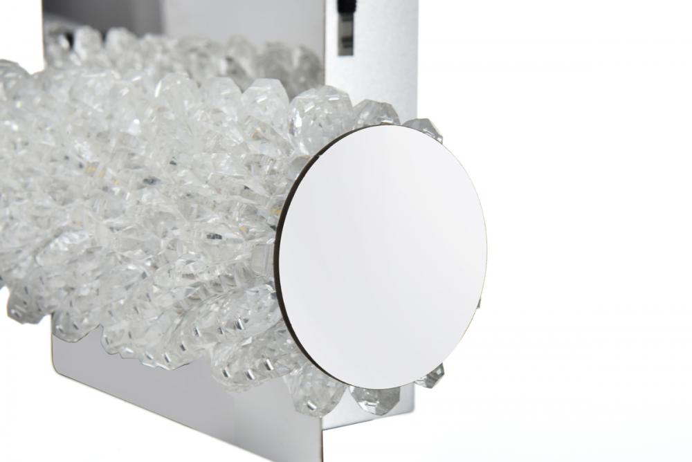 Illuminate your space with this exquisite crystal wall sconce, boasting a sleek and horizontal cylindrical design measuring 12 inches with a 5.5 inch backplate.