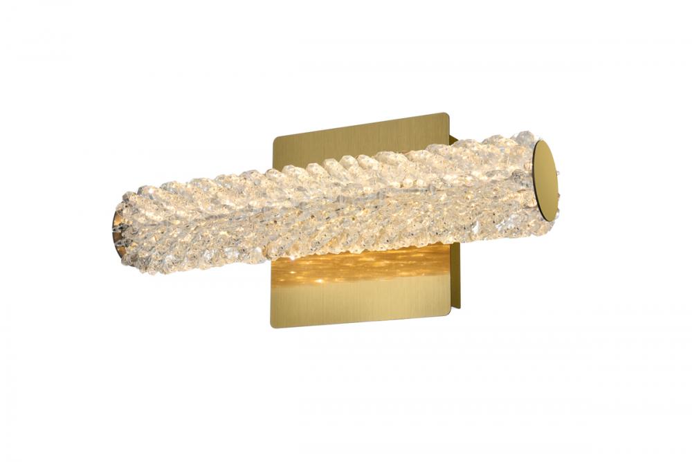 Illuminate your space with this exquisite crystal wall sconce, boasting a sleek and horizontal cylindrical design measuring 12 inches with a 5.5 inch backplate.