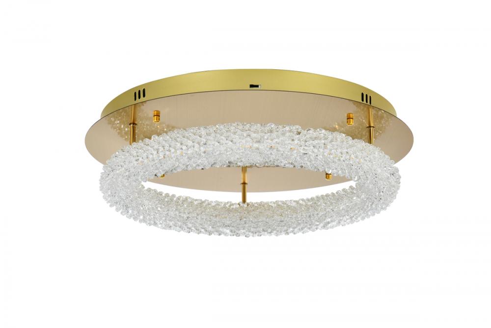 Illuminate your surroundings with the enchanting Bowen 22 inch LED Flush Mount, showcasing a captivating round crystal-adorned design for a touch of sophistication. with an impressive LED lifespan of 20,000 hours, this light delivers enduring brilliance to your space. Enjoy a swift and user-friendly installation experience with no assembly required. Choose from three color temperatures (3000K, 4500K, 6000K) to set the perfect mood. Crafted with durable Iron and Crystal materials, ETL listed for safety compliance, and featuring integrated LED technology, this flush mount ensures long-lasting and hassle-free illumination.