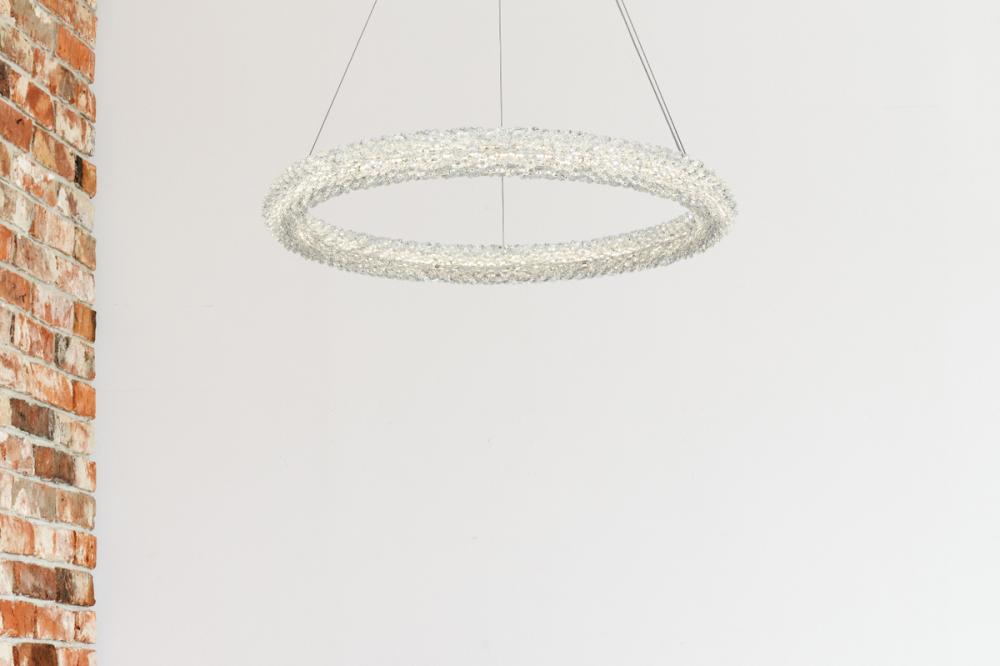 Elevate your space with this captivating 26 inch LED Chandelier, presenting a captivating round crystal-adorned chandelier paired with an elegant 7-inch canopy for a touch of sophistication.