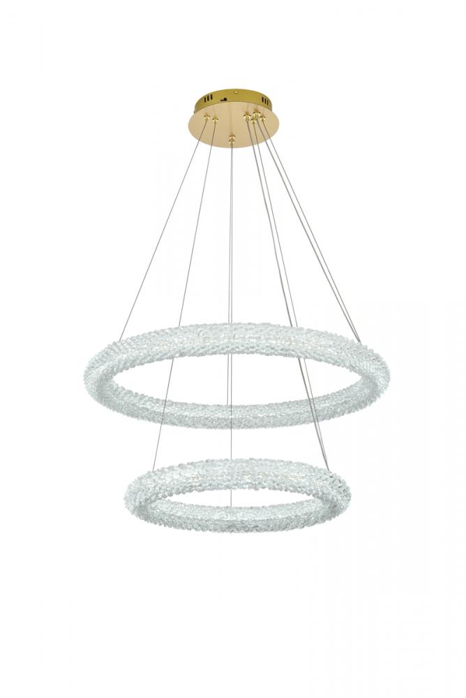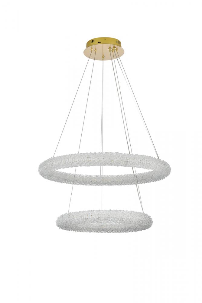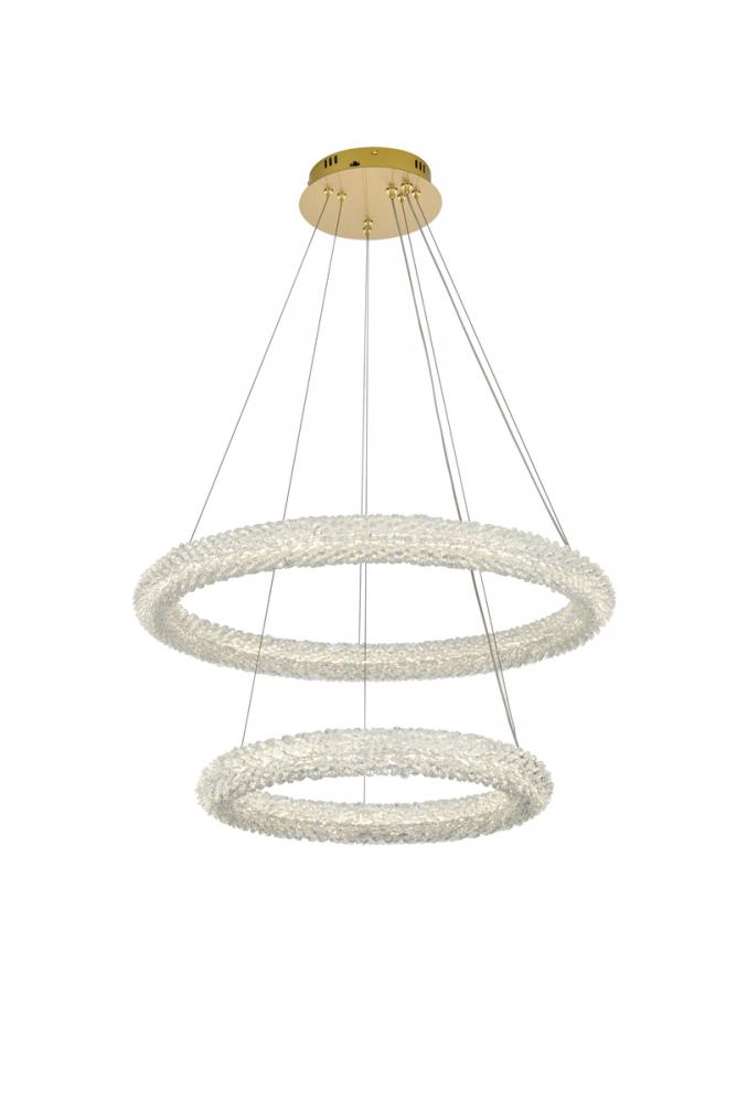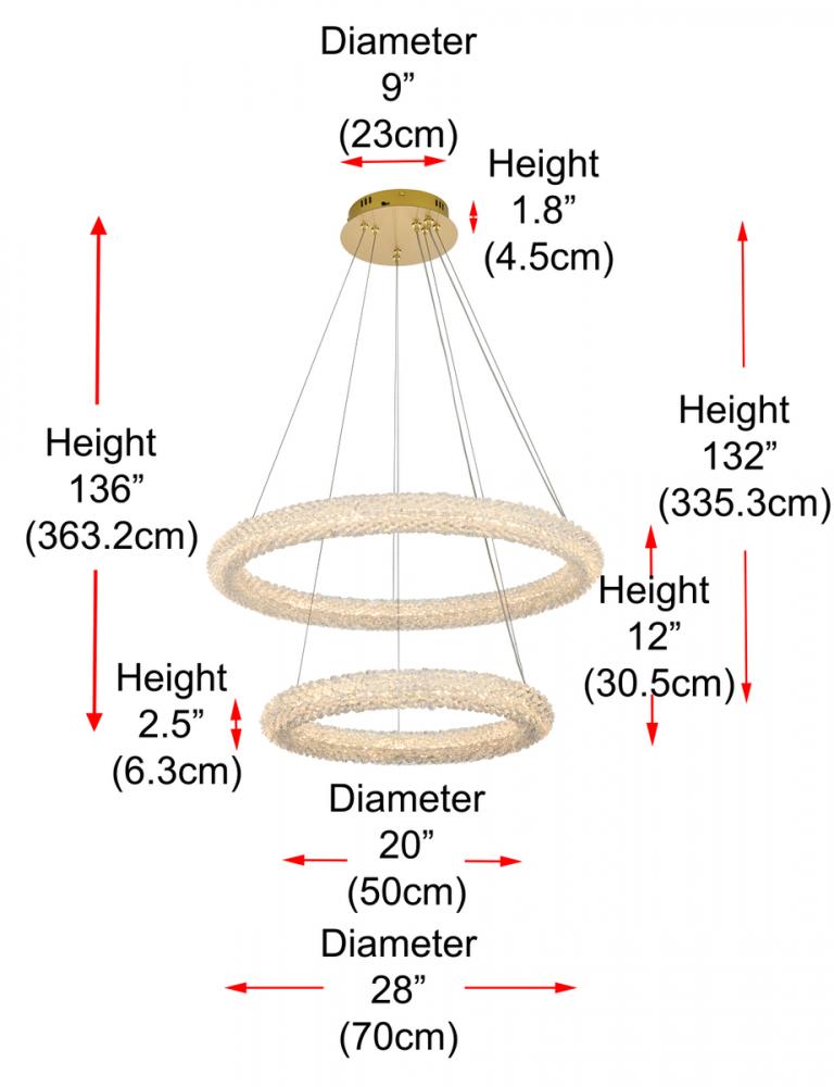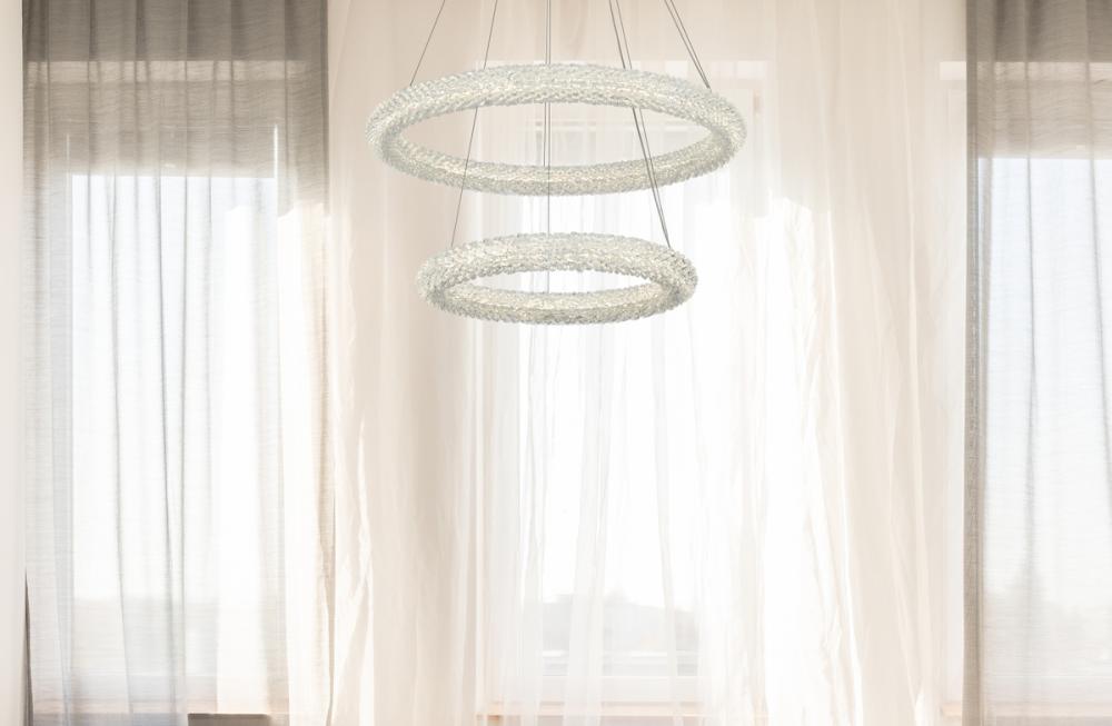 Illuminate your space with this enchanting 28 inch LED Tiered Chandelier, showcasing two captivating rings adorned with crystals for a touch of sophistication.
