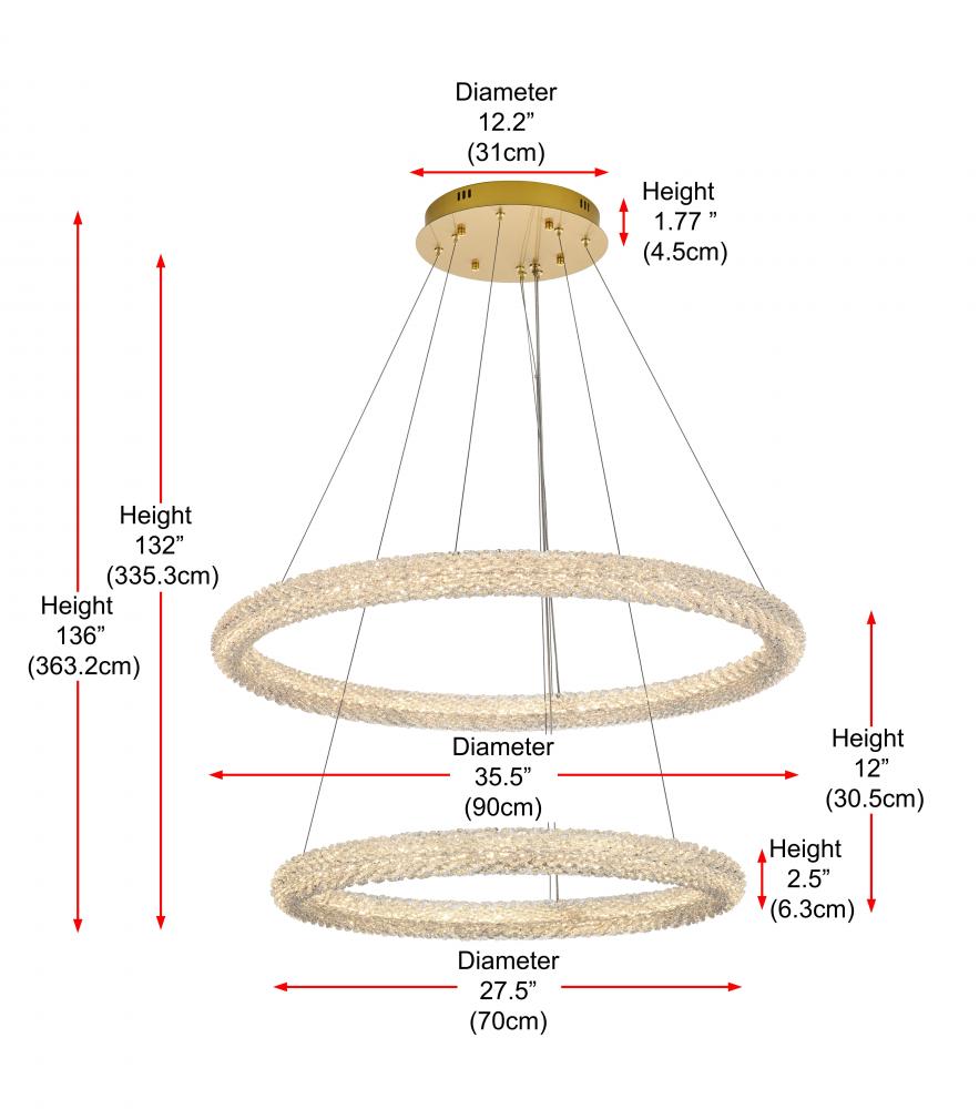 Illuminate your space with this enchanting LED Tiered Chandelier, showcasing two captivating rings adorned with crystals for a touch of sophistication.