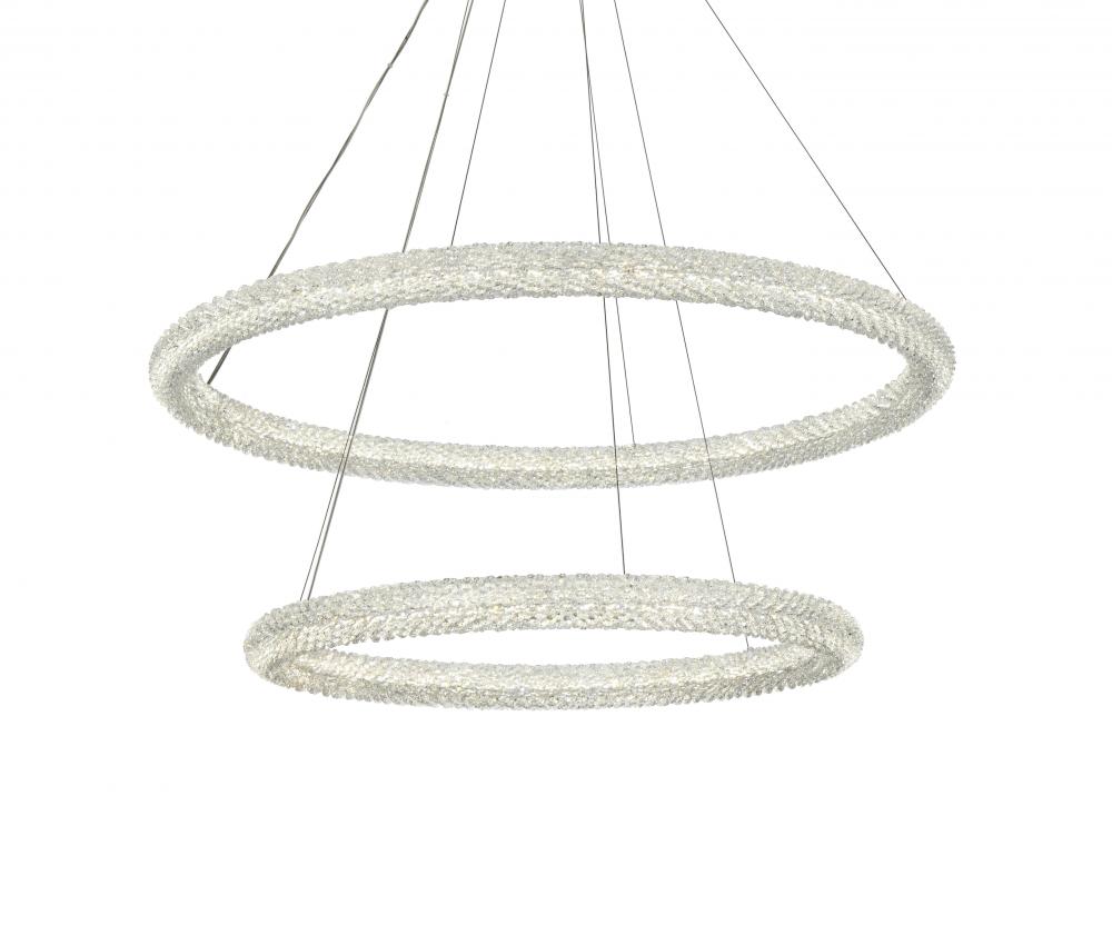 Illuminate your space with this enchanting LED Tiered Chandelier, showcasing two captivating rings adorned with crystals for a touch of sophistication.