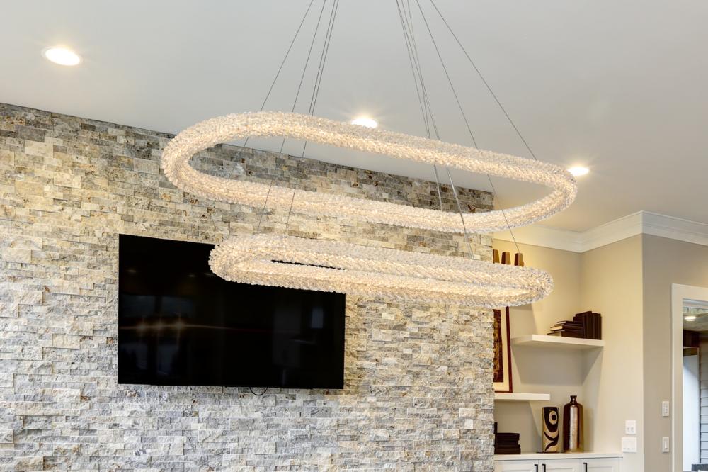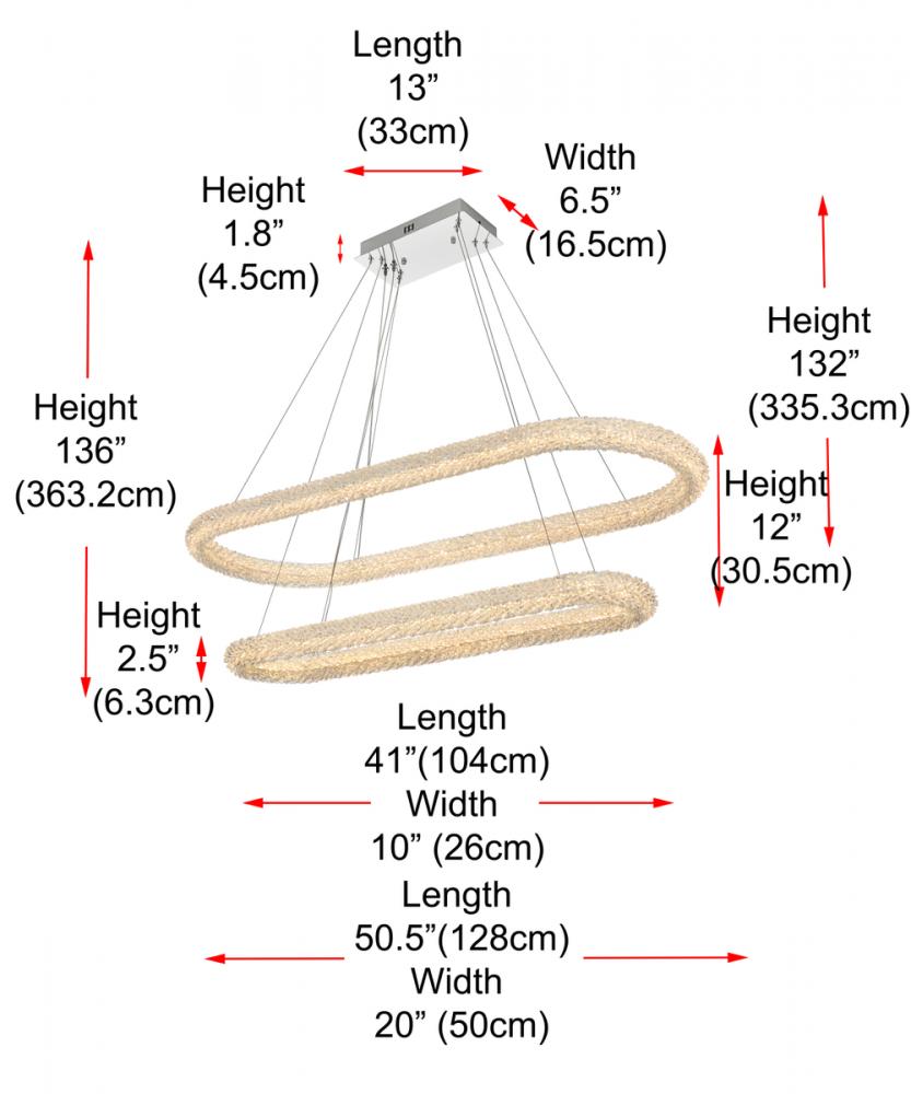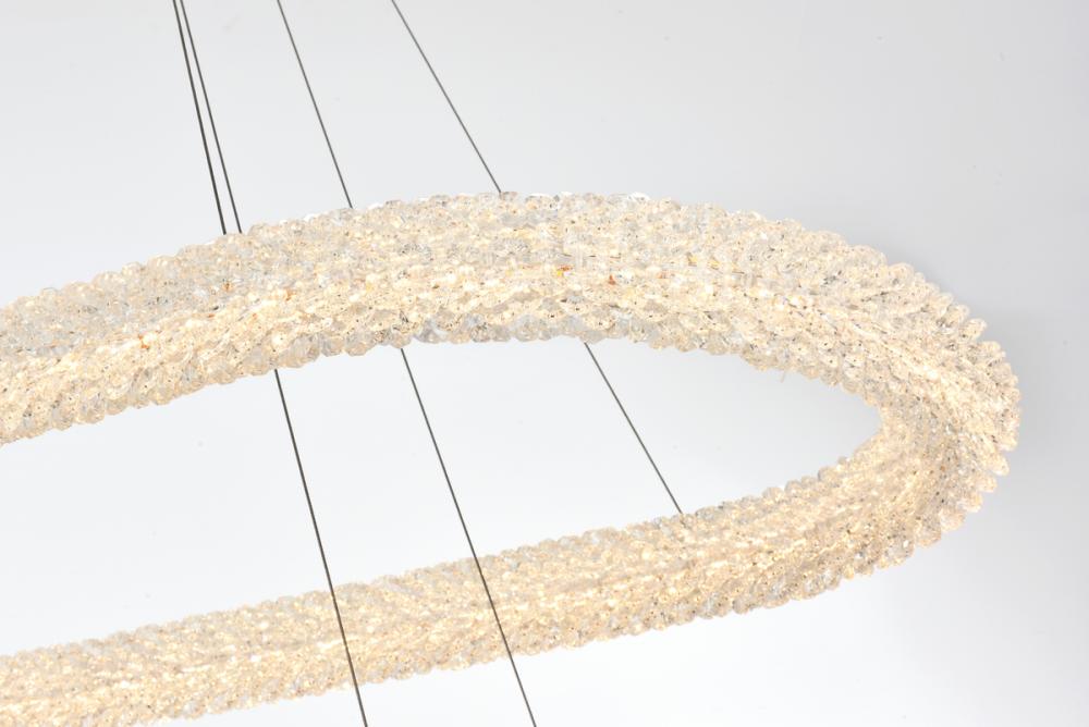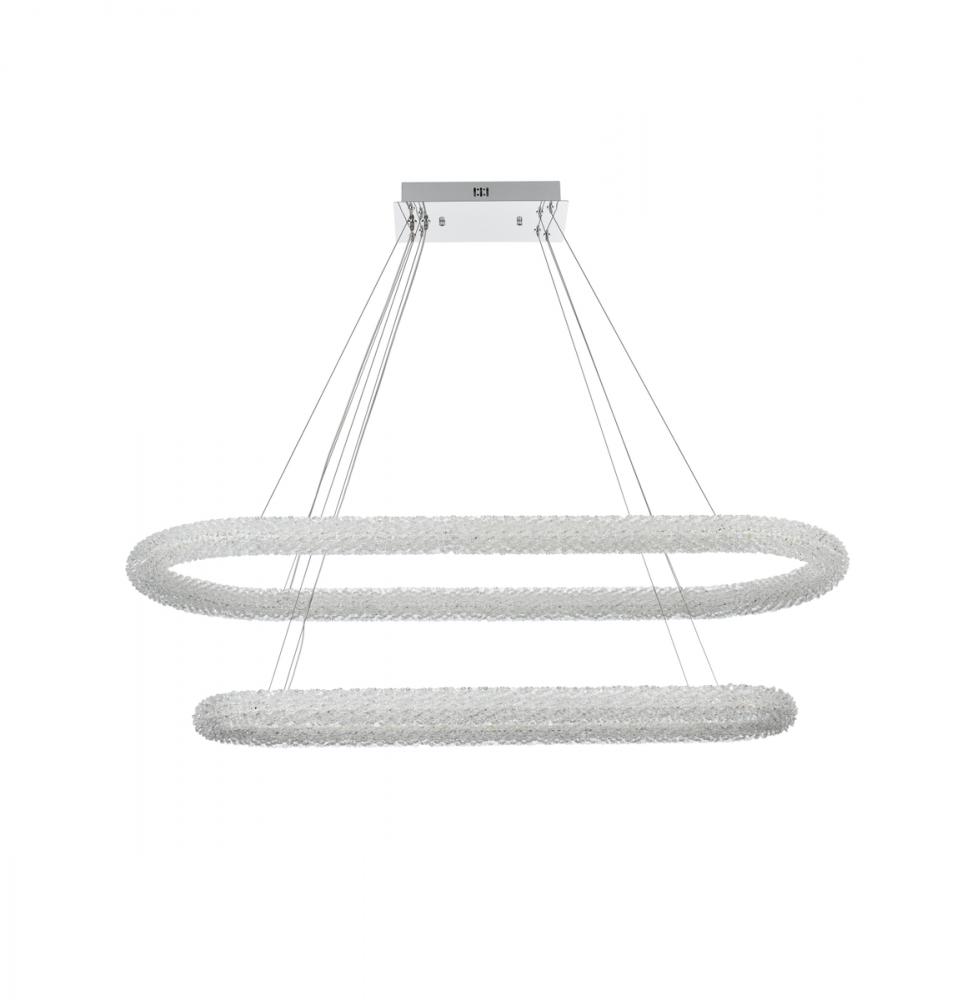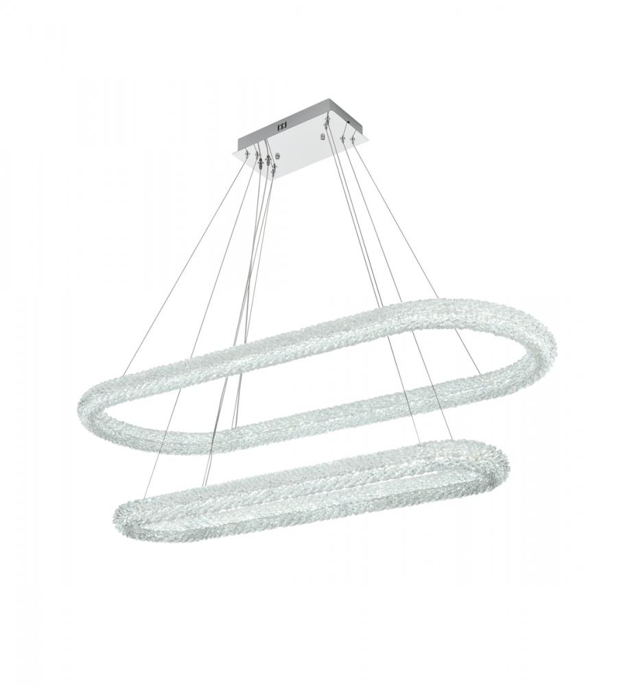 Illuminate your space with this enchanting 51 inch LED Tiered Chandelier, showcasing two captivating oblong rings adorned with crystals, adding a touch of sophistication.