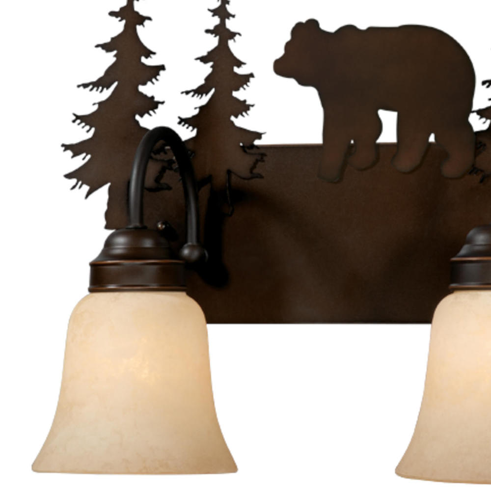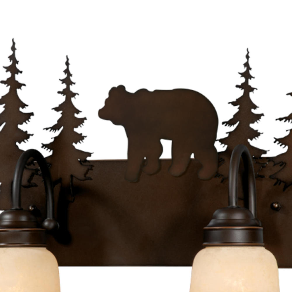 Evoking the spirit of the wilderness, this rustic themed light is clad in a burnished bronze finish and features silhouetted bear imagery atop glowing amber flake glass. The classic form of this lamp makes it a great choice for a vacation lodge, cabin or a suburban home - it will complement a variety of home styles: anywhere you want to bring an element of nature. Medium screw base lamping provides maximum light output, and flexibility in bulb choice.