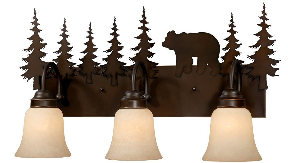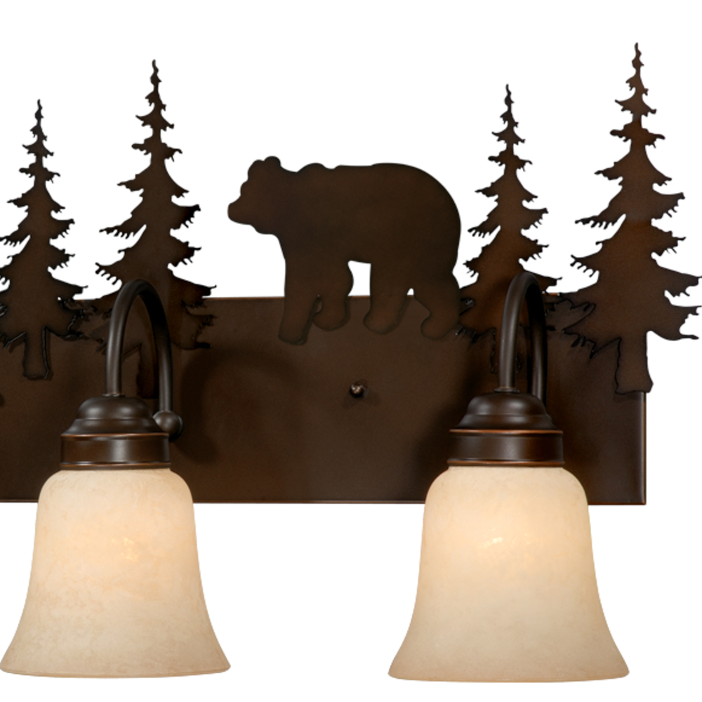 Evoking the spirit of the wilderness, this rustic themed light is clad in a burnished bronze finish and features silhouetted bear imagery atop glowing amber flake glass. The classic form of this lamp makes it a great choice for a vacation lodge, cabin or a suburban home - it will complement a variety of home styles: anywhere you want to bring an element of nature. Medium screw base lamping provides maximum light output, and flexibility in bulb choice.