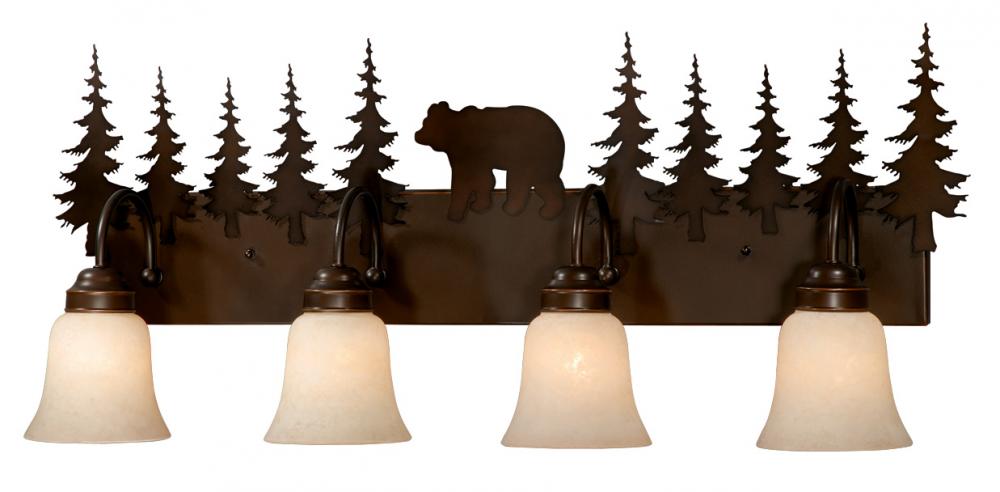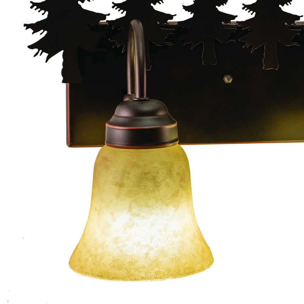 Evoking the spirit of the wilderness, this rustic themed light is clad in a burnished bronze finish and features silhouetted bear imagery atop glowing amber flake glass. The classic form of this lamp makes it a great choice for a vacation lodge, cabin or a suburban home - it will complement a variety of home styles: anywhere you want to bring an element of nature. Medium screw base lamping provides maximum light output, and flexibility in bulb choice.