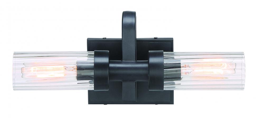 Iron Graphic 2 Light Vanity with Clear Ribbed Glass shade ideal for today's interiors