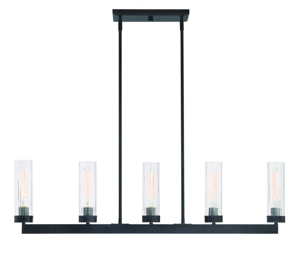 Iron Graphic Island Pendant with Clear Ribbed Glass shade ideal for today's interiors