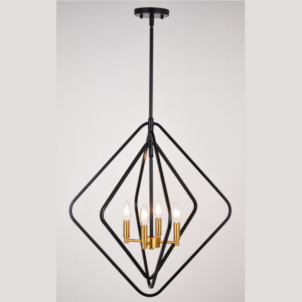 The Brady collection features adjustable square frames with soften edges and clean lines which coordinate with contemporary or Mid-century modern spaces. Rotate the frames into a single nested plane highlighting the candelabra within. Or space the frames symmetrically for a more dimensional look. This pendant features a black and satin brass two-tone finish. Use this statement chandelier in a grouping over a kitchen island or elongated table. Equally suited for dining room, foyer, and bedroom spaces.