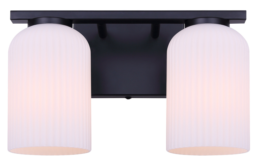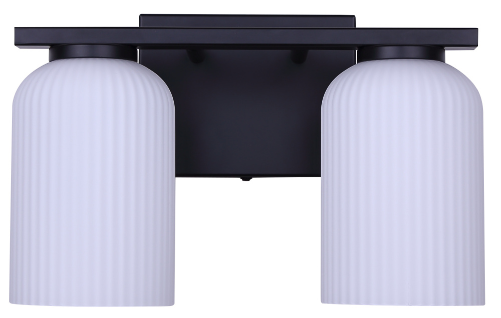 BRAM 2 Lt Vanity Fixture Matte Black Finish with Ribbed Opal Glass 60W Type A