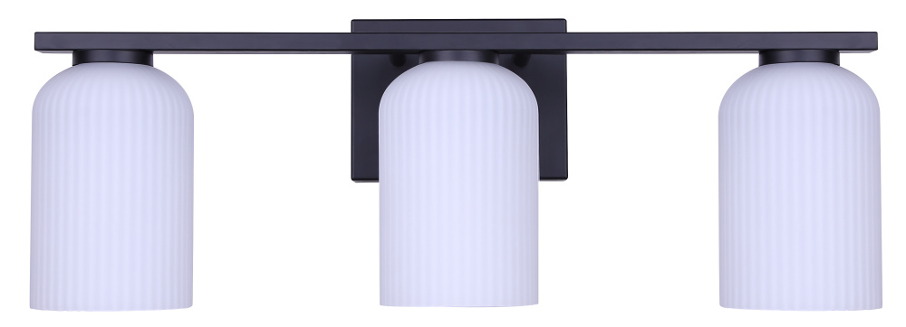 BRAM 3 Lt Vanity Fixture Matte Black Finish with Ribbed Opal Glass 60W Type A