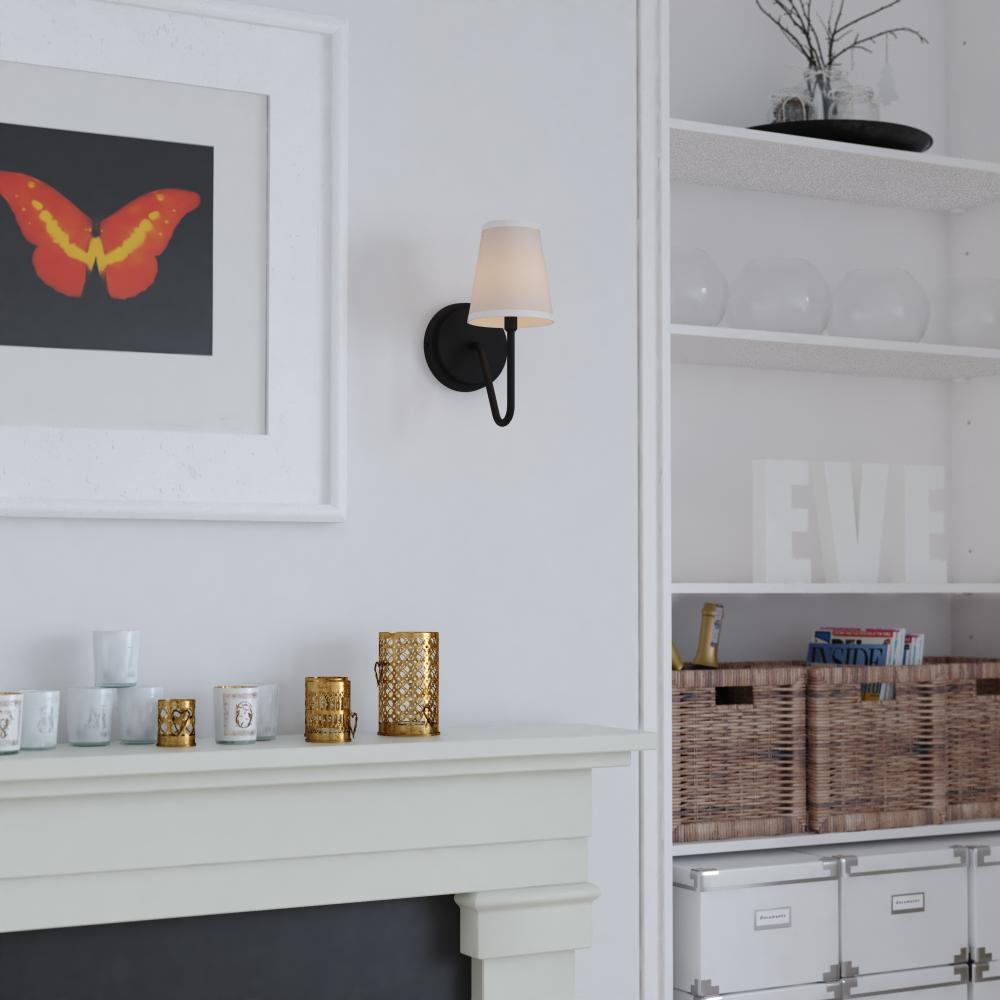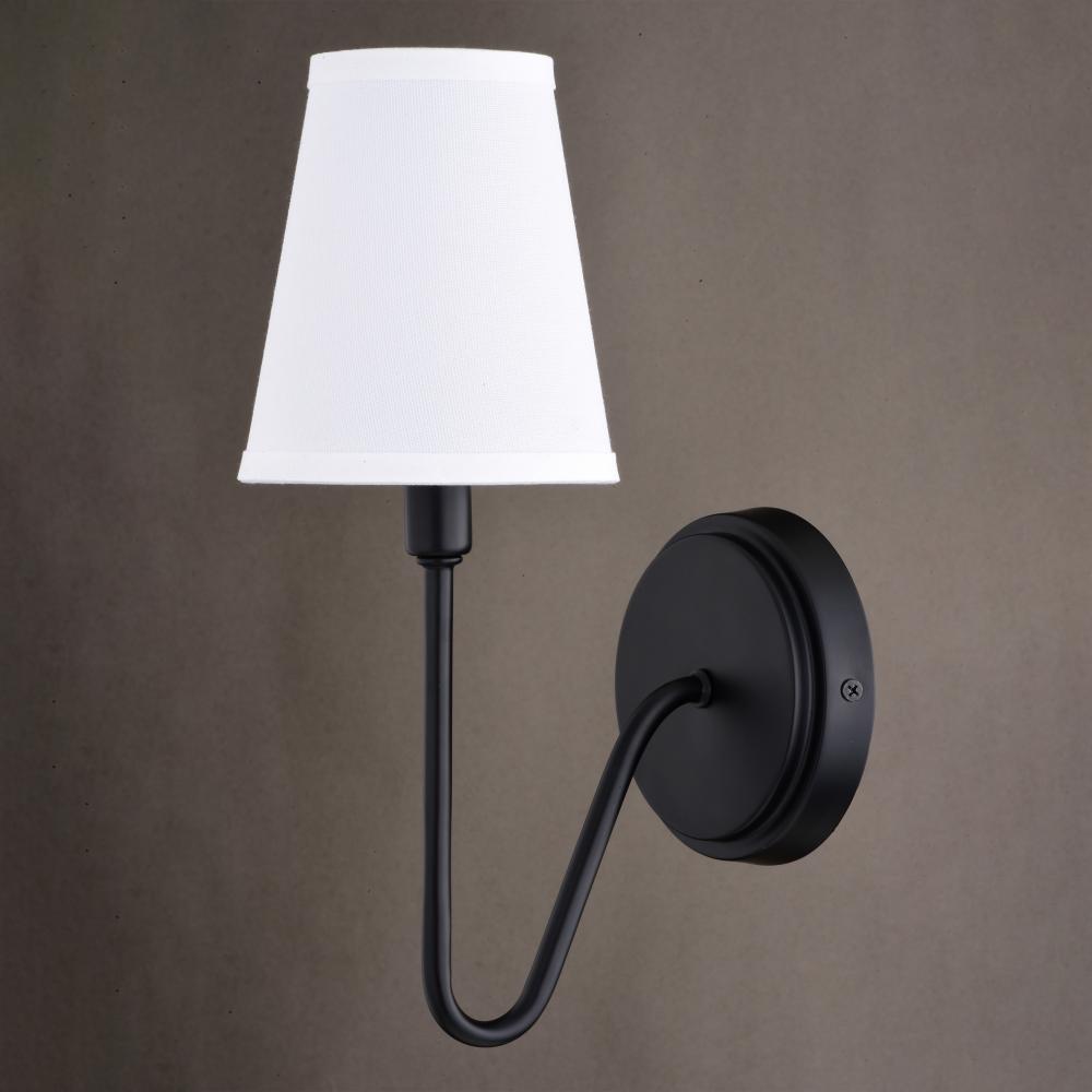 The Briar wall light is a timeless take on a traditional classic. The graceful curving arm supports a white linen fabric shade, adding a touch of elegance to any space in your home. Finished in matte black, this wall sconce adds a touch of sophistication to your baths, hallways, or bedrooms alike.