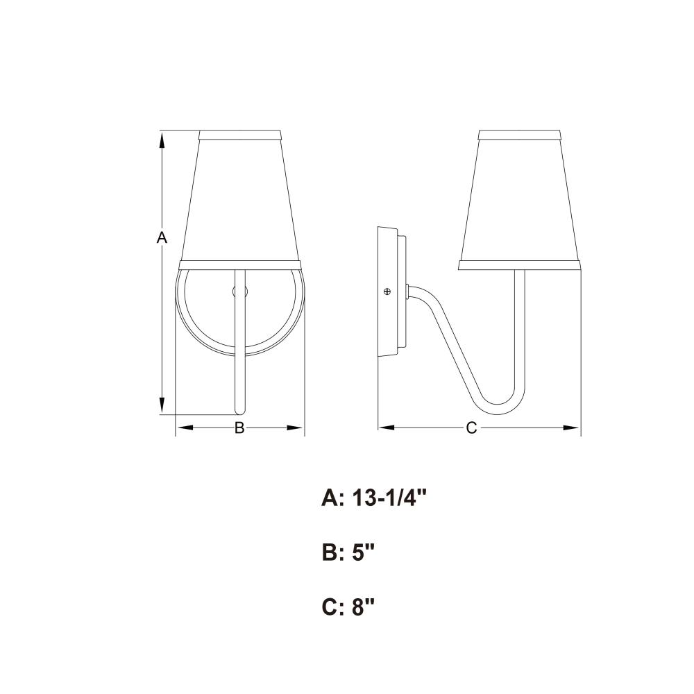 5-in W x 13.25-in H x 8-in D with 5-in W x 5-in H backplate