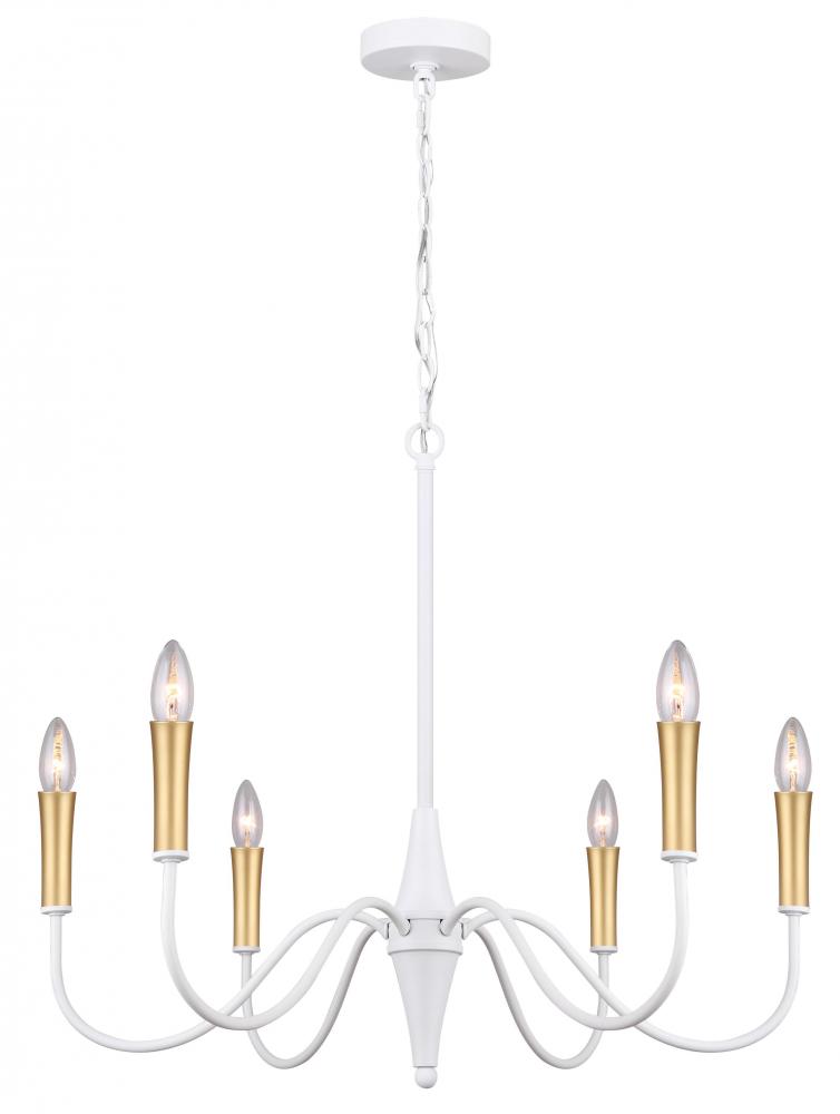 Embrace modern sophistication with the ICH1103A06WH BRIELLE 6-Light Chain Chandelier, designed to enhance the ambiance of any space. Finished in a timeless MWH color, this chandelier effortlessly blends with a variety of decor styles, from contemporary to transitional. With a width of 25.75 inches and a height of 23.25 inches, it serves as a striking focal point in dining rooms, kitchens, or living areas. The inclusion of PGD sleeves offers customization options, allowing you to personalize the chandelier to suit your taste. Illuminate your home with elegance and charm using the BRIELLE Chandelier as a centerpiece.