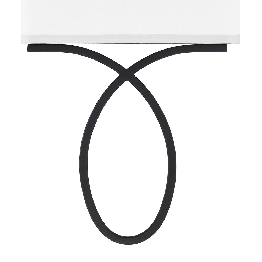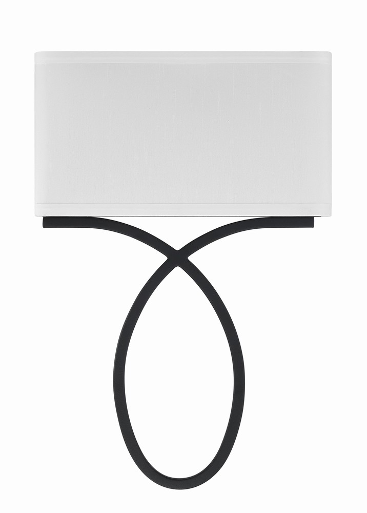 The minimalist two-light wall sconce features an oval metal accent below the white silk rectangular shade. Its simple form can be used for a contemporary or transitional home while versatile enough to be incorporated into any design.