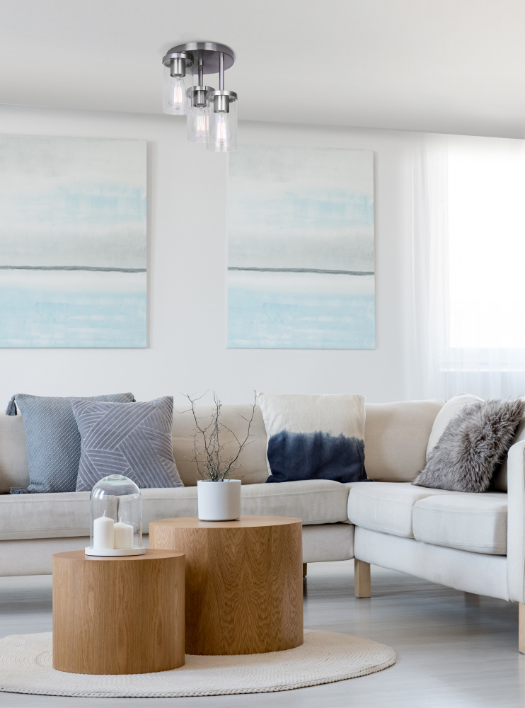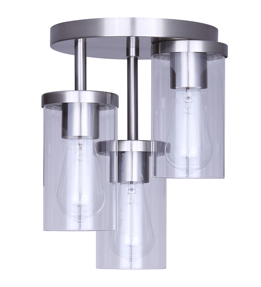 Refine your interior lighting with the Britton 3-Light Semi-Flush Mount Ceiling Light in brushed nickel. This sleek fixture combines clean lines and clear glass to bring a touch of modern elegance and transitional appeal to any room. Its brushed nickel finish enhances surrounding décor while adding just the right amount of shine.Compact yet impactful, the Britton fixture measures 10.62” W x 12.87” H, making it a perfect choice for entryways, hallways, bathrooms, or bedrooms—especially in spaces with lower ceilings. The clear glass shades allow for maximum light output while showcasing decorative bulbs for added style. Designed for use with three 60W Type A bulbs, this fixture delivers both ambient and task lighting with ease.Finished with quality materials and built for longevity, this semi-flush mount offers a simple installation process and a versatile design to complement your evolving home style.
