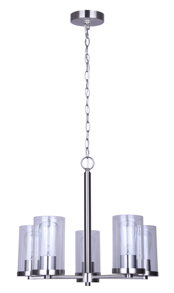 The Britton 5-Light Chain Chandelier in Brushed Nickel brings an effortless blend of modern sophistication and timeless style to your home. With its sleek brushed nickel finish and clear glass shades, this fixture complements both transitional and contemporary interiors, offering a bright and elegant focal point for any room.Measuring 21 inches wide with an adjustable height from 18.12 to 66 inches, this chandelier adapts to a variety of spaces and ceiling heights. The five-light design ensures ample illumination, while the open glass shades create a warm, inviting glow. Compatible with five 60W Type A bulbs, it’s perfect for dining rooms, kitchens, and entryways. Whether you're updating your decor or completing a renovation, Britton offers a timeless statement with modern appeal.