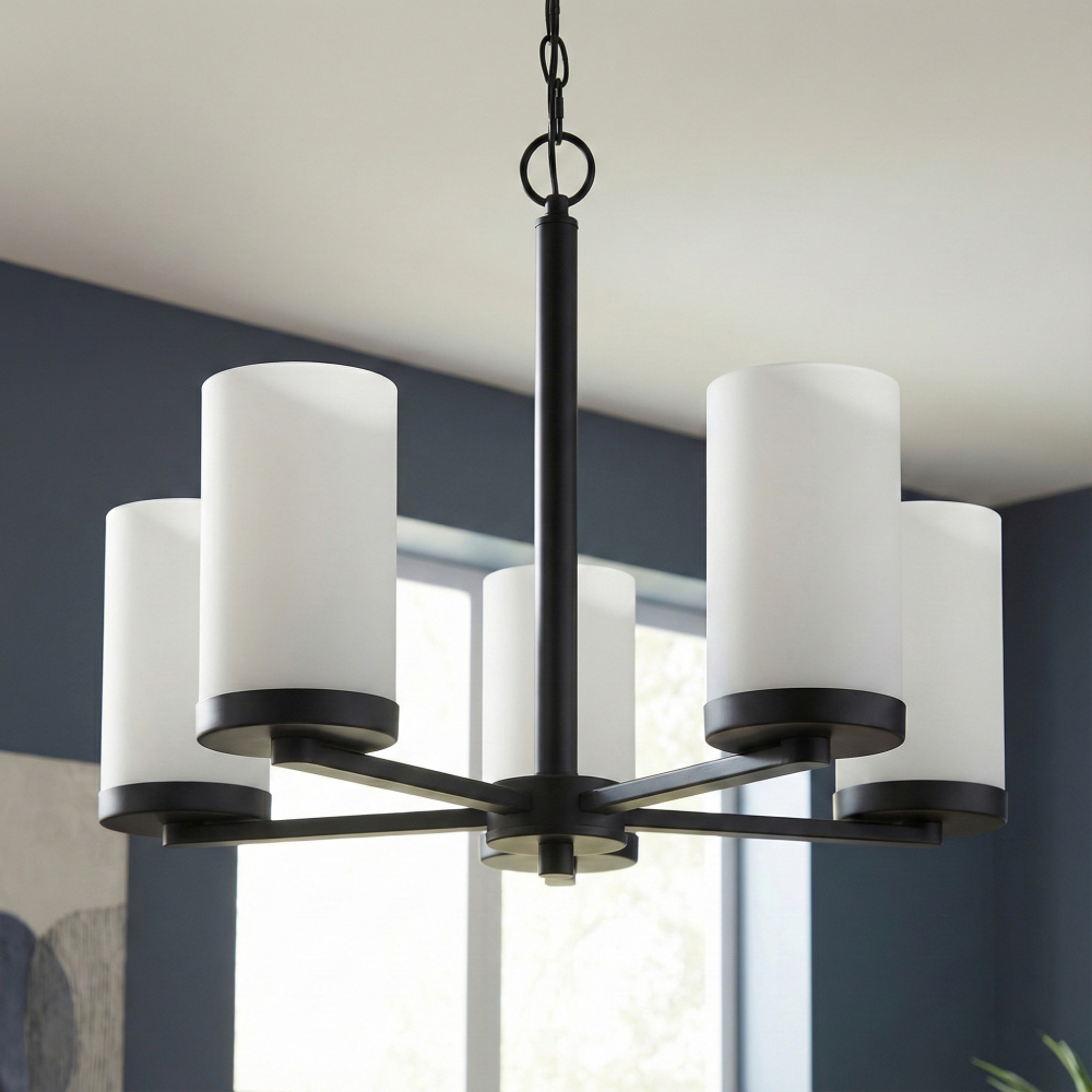 Britton 5-Light Modern Chandelier Matte Black Finish with Opal Glass Shades