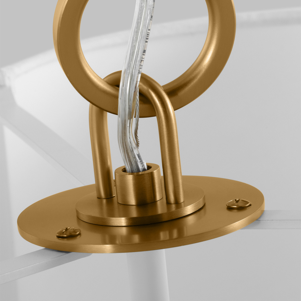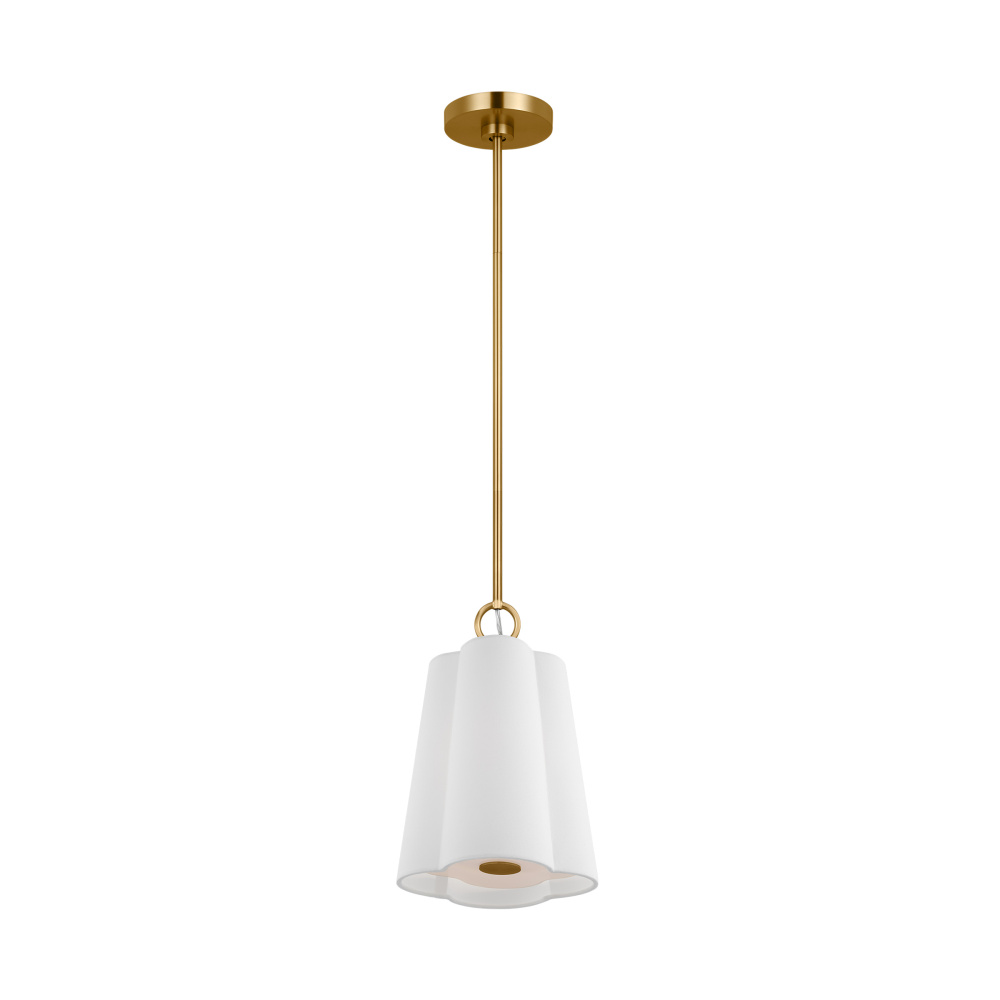 Floral motifs and feminine scalloping take center stage with the Bronte series by kate spade new york. The classic quatrefoil silhouette is beautifully updated with a fabric white line shade and burnished brass finish. Bronte adds a whimsical focal point for the entryway or dining room.
