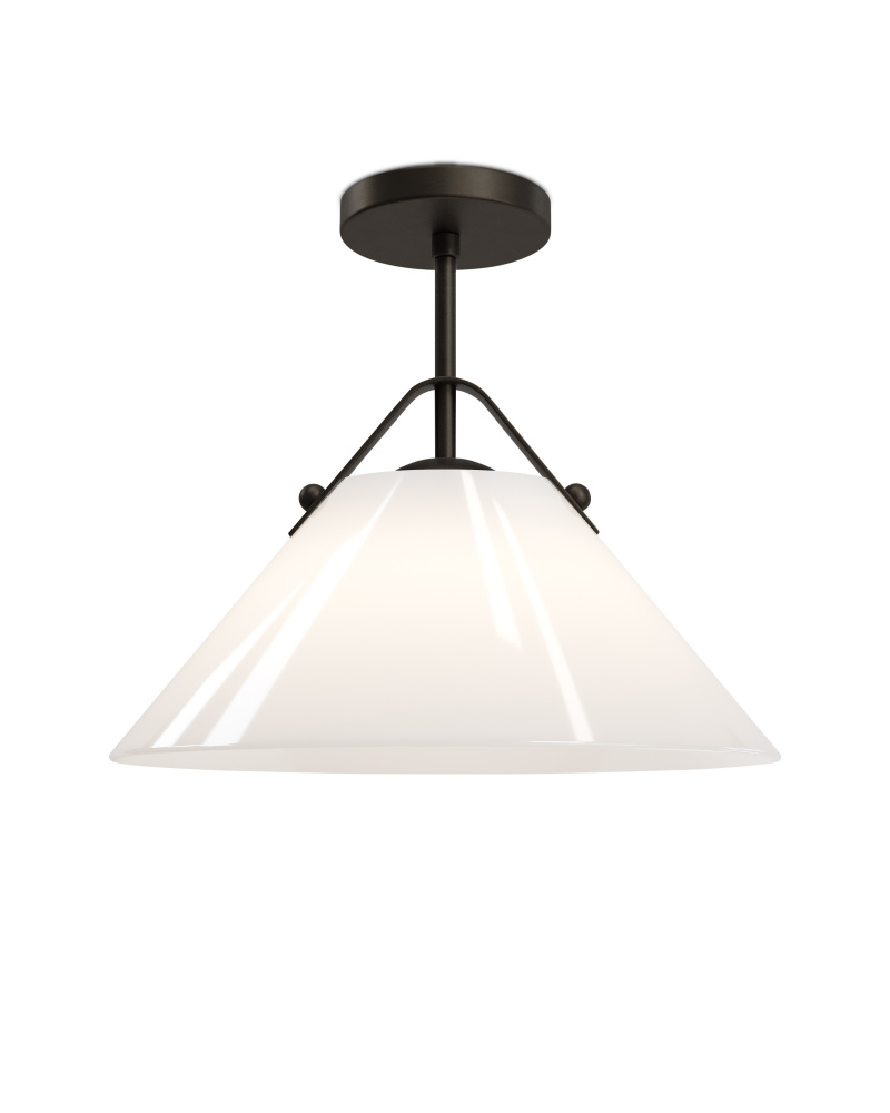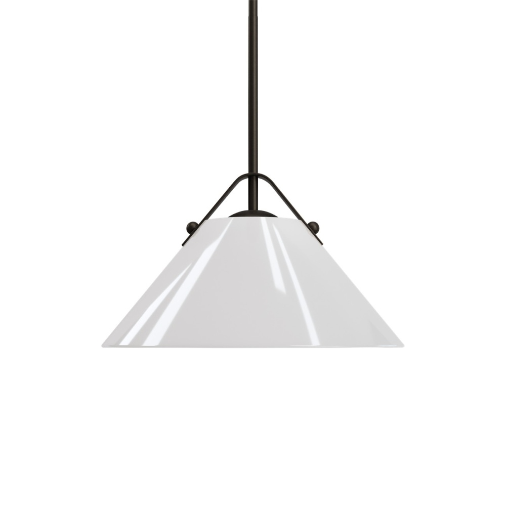 The Bronwen Bronze Pendant is an equestrian-inspired design with a flaring white glass shade fastened to the round canopy with a sophisticated strap—a subtle nod to classic tack hardware. The profile can lean modern farmhouse, though it also complements other design styles. The metal in an oil-rubbed bronze finish is a nice contrast to the paleness of the shade, which has a glossy surface that glows. At 19 inches in diameter, the one-light pendant is dimmable. Adjustable from 18" to 60" with use of included chain/rod kit/cable. If your space calls for a longer drop, additional chain/rods/cable is available for purchase.