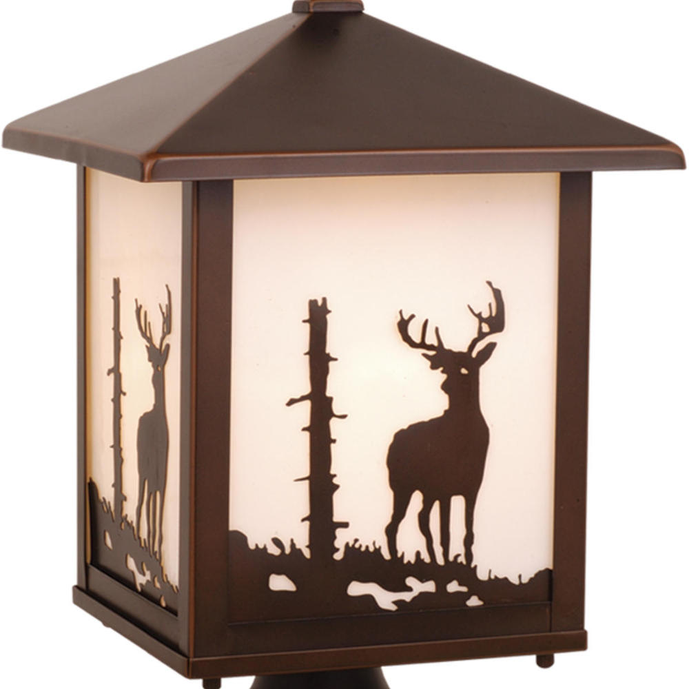 Evoking the spirit of the wilderness, this rustic themed light is clad in a burnished bronze finish and features silhouetted deer imagery atop glowing white tiffany style glass. The classic form of this lamp makes it a great choice for a vacation lodge, cabin or a suburban home - it will complement a variety of home styles: anywhere you want to bring an element of nature. Medium screw base lamping provides maximum light output, and flexibility in bulb choice.