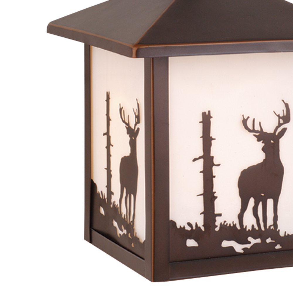 Evoking the spirit of the wilderness, this rustic themed light is clad in a burnished bronze finish and features silhouetted deer imagery atop glowing white tiffany style glass. The classic form of this lamp makes it a great choice for a vacation lodge, cabin or a suburban home - it will complement a variety of home styles: anywhere you want to bring an element of nature. Medium screw base lamping provides maximum light output, and flexibility in bulb choice.