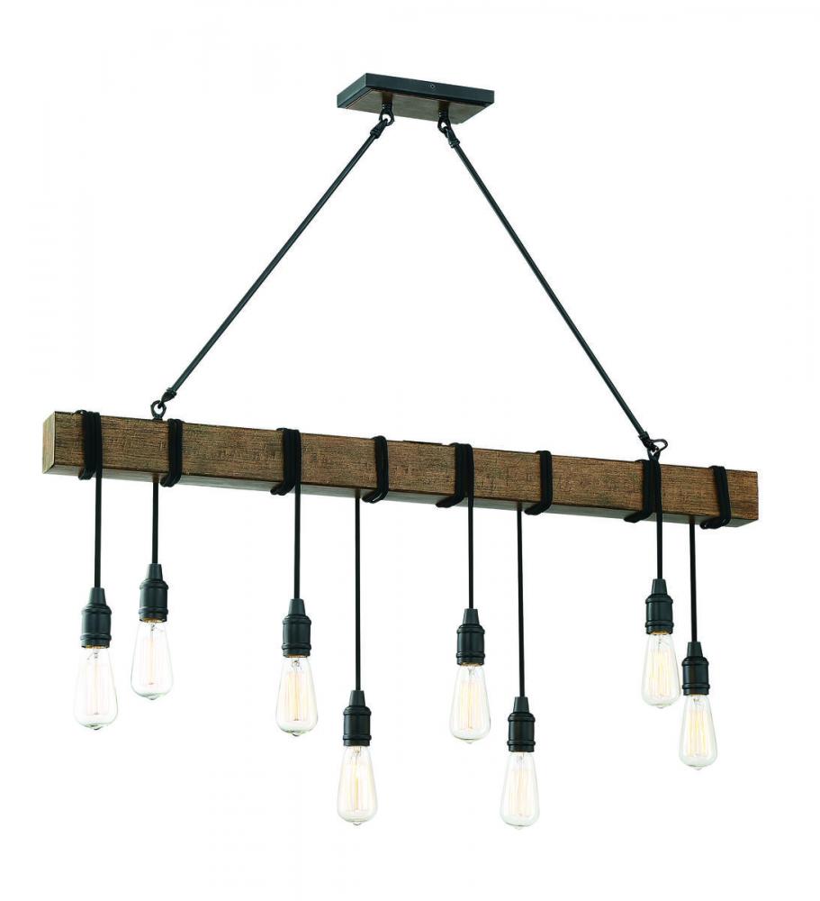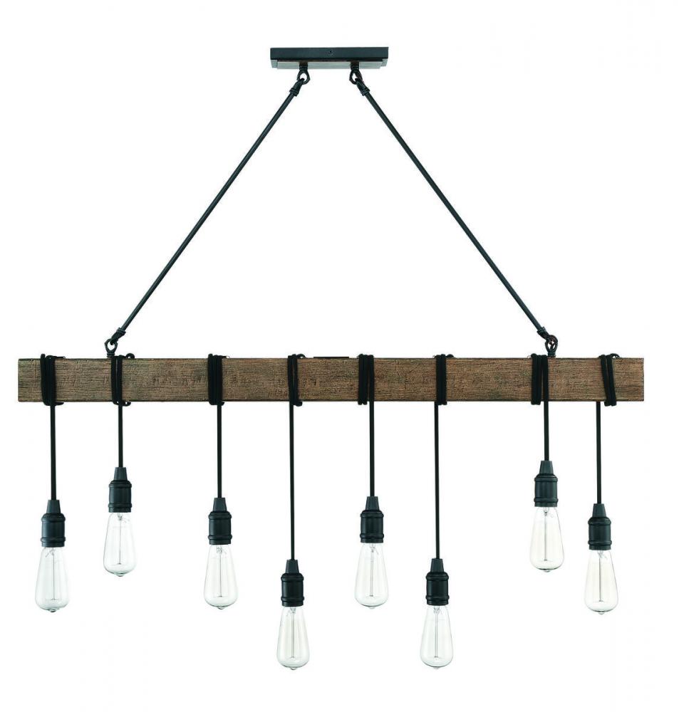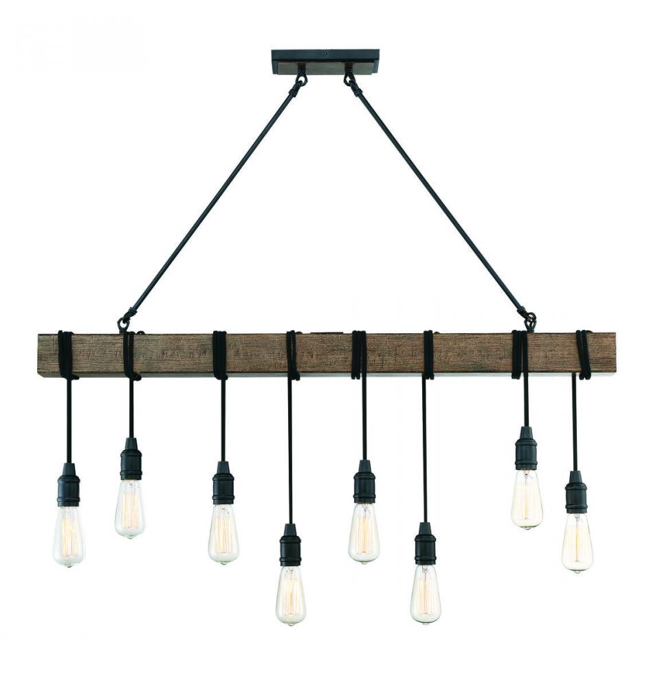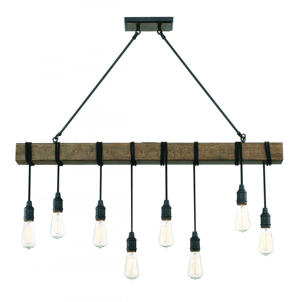 Simple, rustic style is yours with the unique Savoy House Burgess 8-light linear pendant. It features little more than bare bulbs suspended from cords wrapped around the bar, finished in Durango, but this minimal look makes a big impact! Linear pendant lights are ideal for use over rectangular dining room tables or kitchen islands, but you can also use them in living rooms, great rooms, over pool tables and in media rooms, too. Since the bulbs are exposed, try using stylized bulbs (not included) like tubular shape or Edison style for a different look! The Durango finish pairs nicely with black or bronze hardware, but also can mix with hardware in other finishes. Rustic, industrial and modern farmhouse style spaces are ideal choices for Burgess. When you choose a Savoy House lighting fixture, you can be certain you’ve selected a piece that will withstand the test of time.